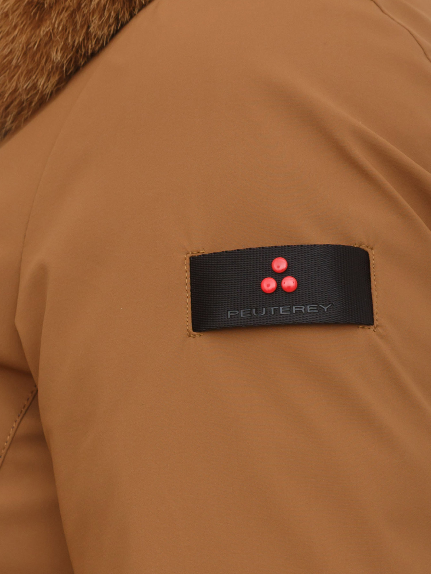 Piumino liscio Peuterey in piuma e nylon marrone con collo pelliccia volpe
