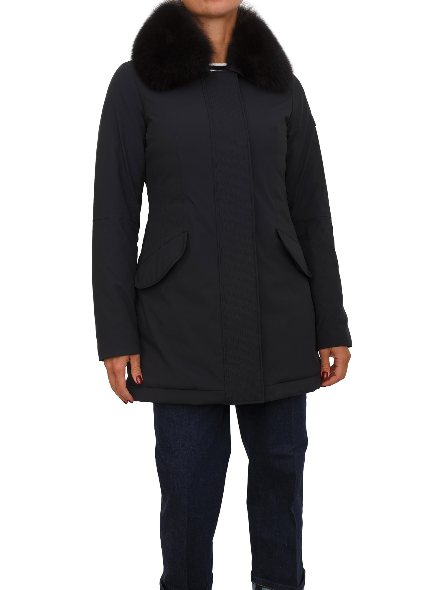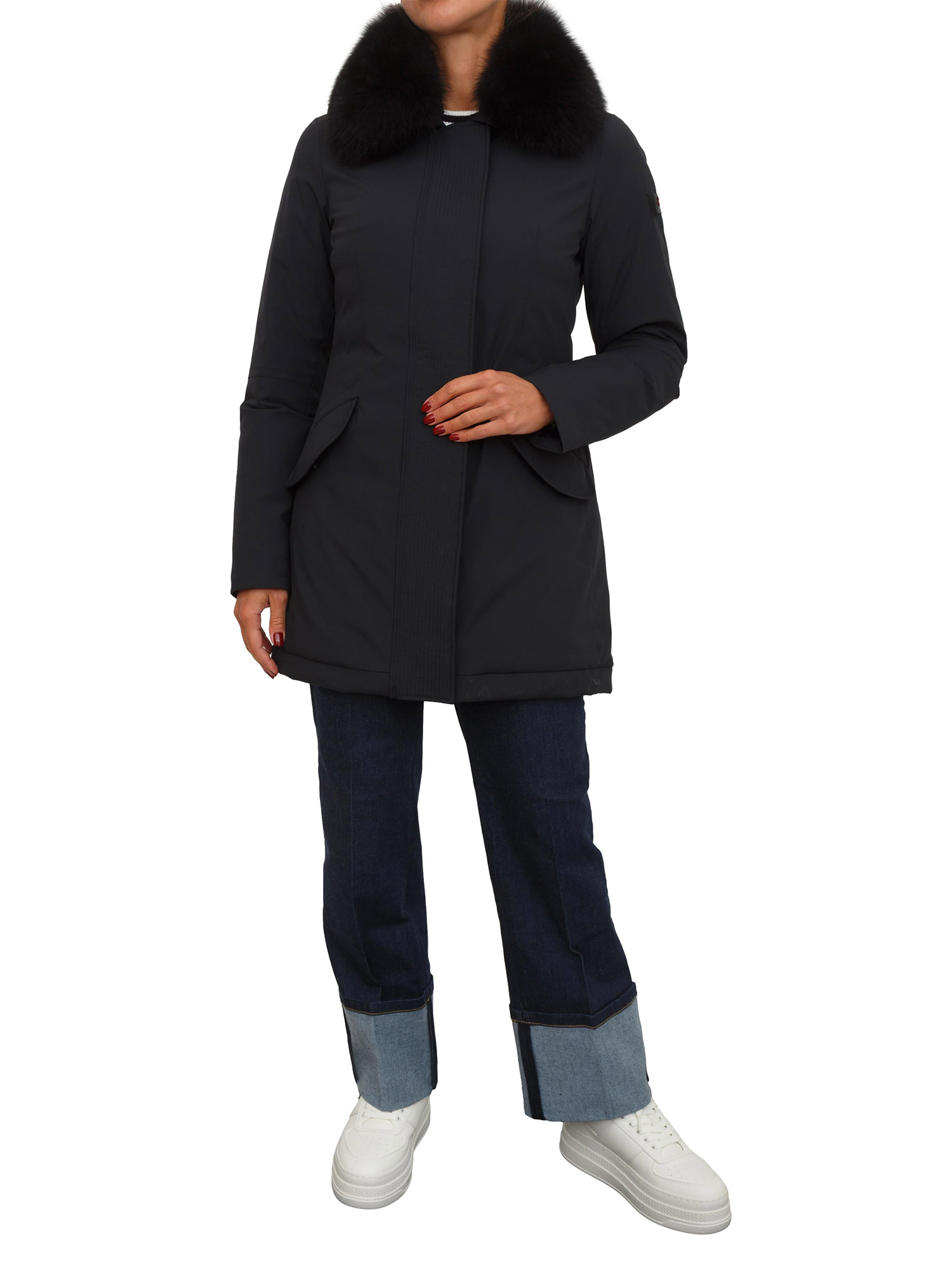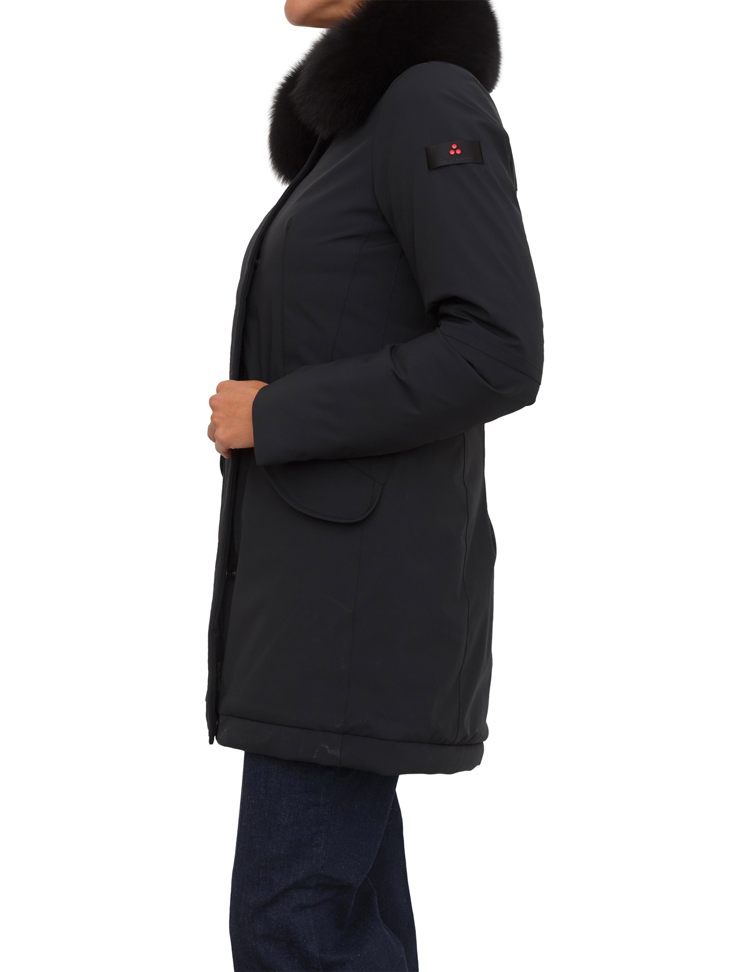 Piumino liscio Peuterey in piuma e nylon nero con collo pelliccia volpe