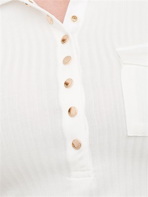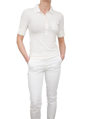Brand: FRACOMINAPolo aderente a costine, colletto classico, bottoncini centrali, e con maniche corte.La modella è alta 1.72 e indossa la taglia XS.