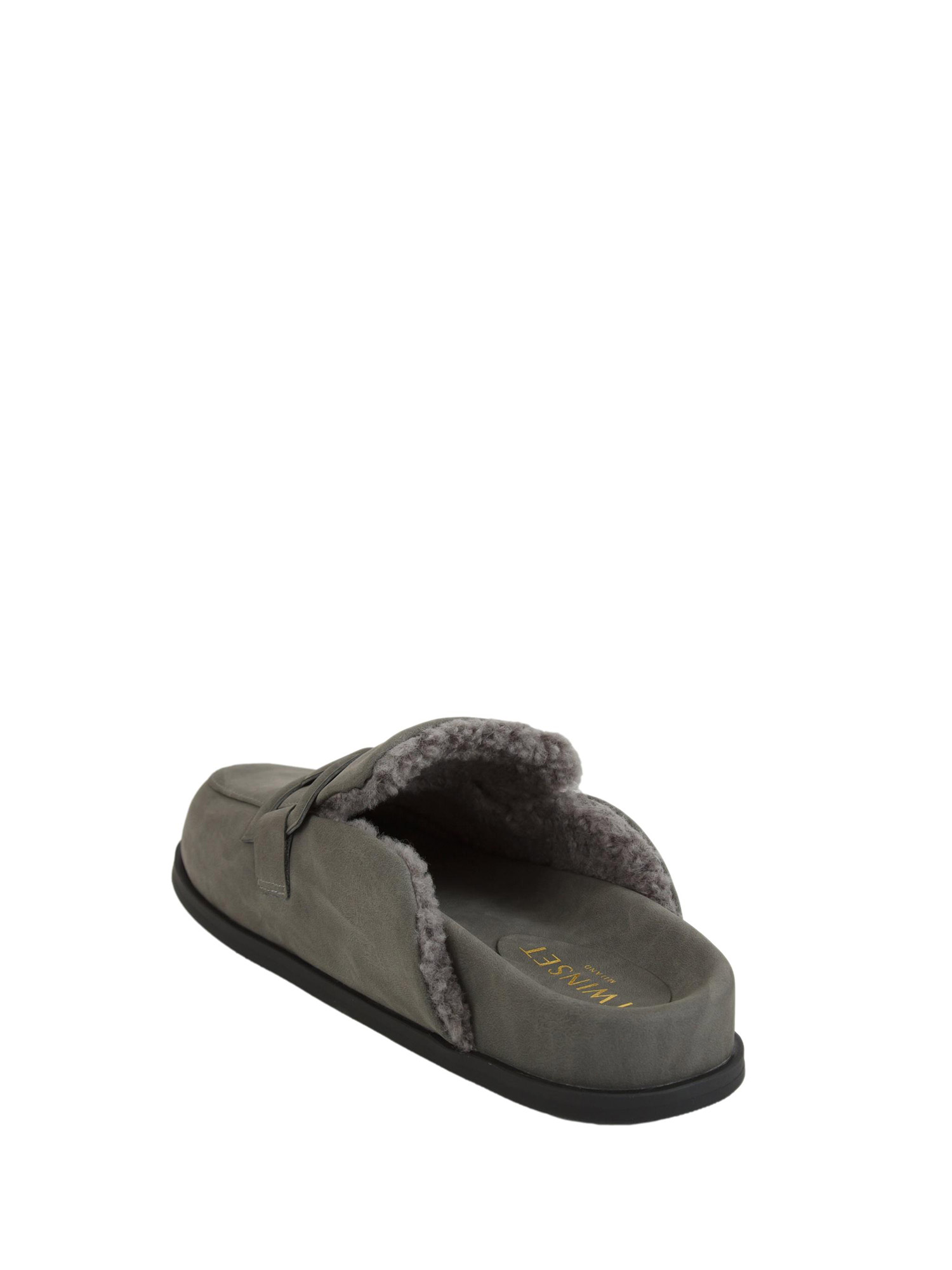 TWIN-SET Scarpe mules a ciabatta Twinset effetto camoscio grigio