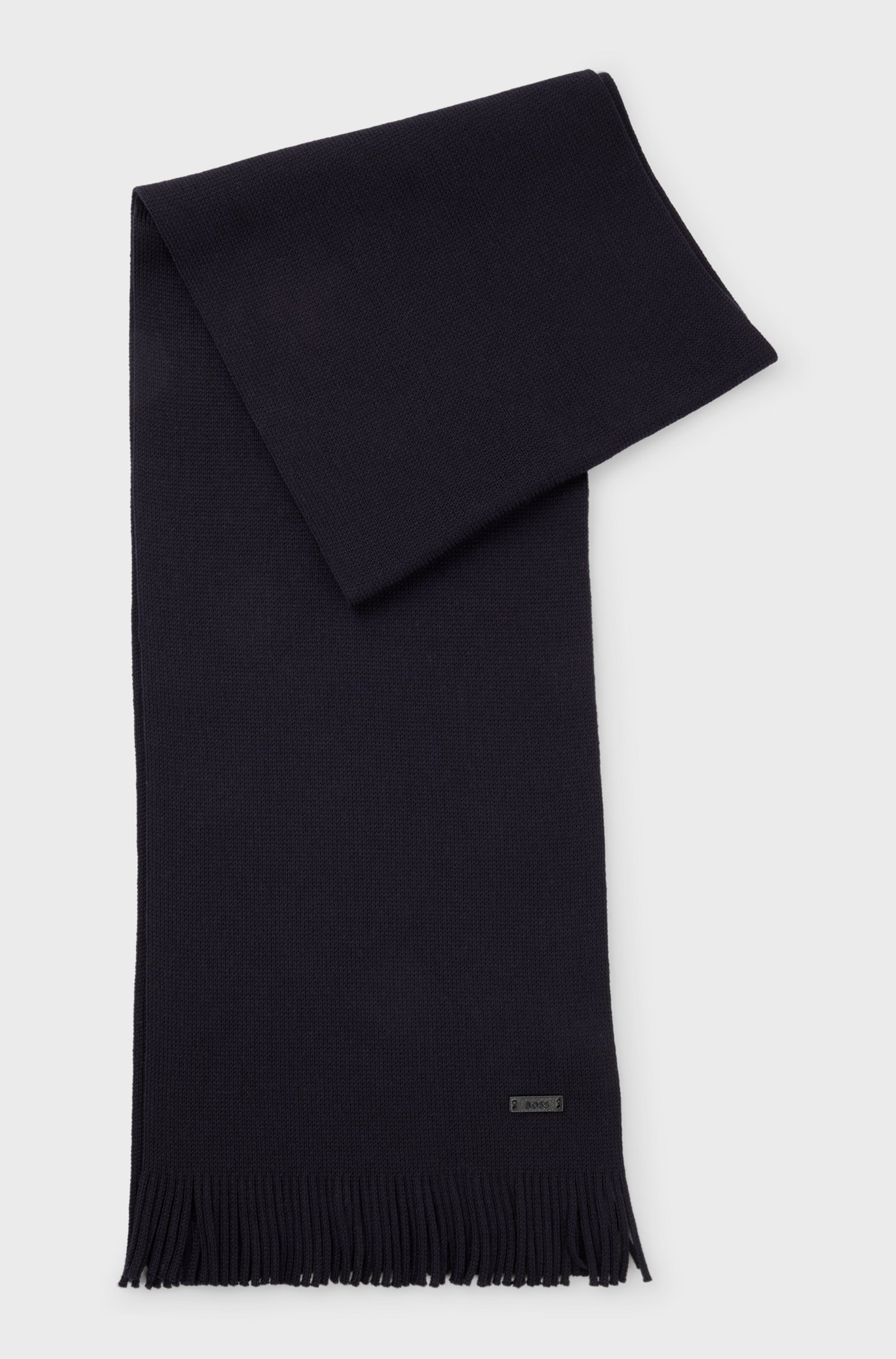 Brand: BOSSUna sciarpa versatile BOSS uomo con lavorazione Raschel, frange e placca in similpelle brandizzata. Questo prodotto è realizzato con calda lana proveniente da allevamenti responsabili. Dimensioni: 25 x 170 cm