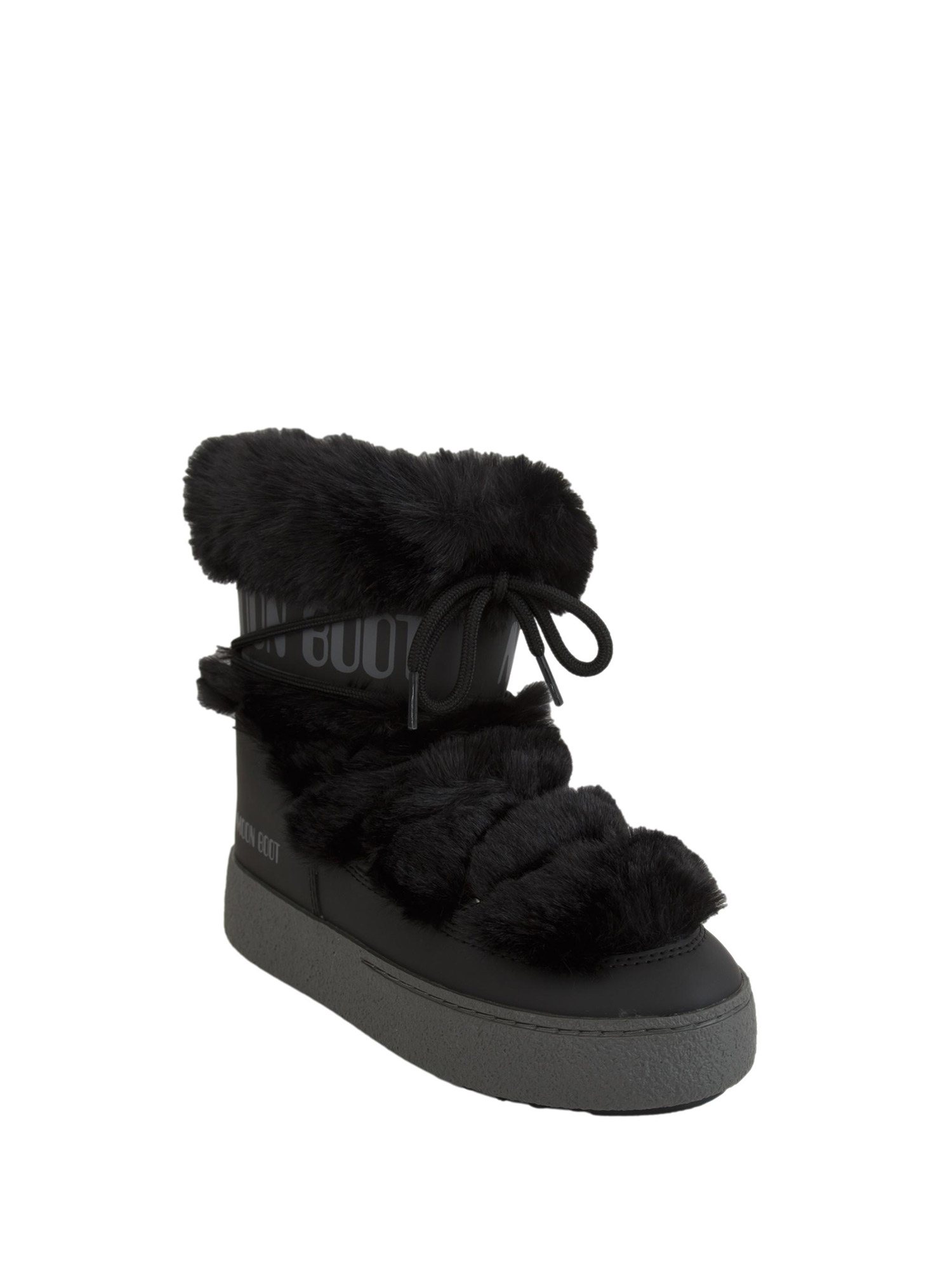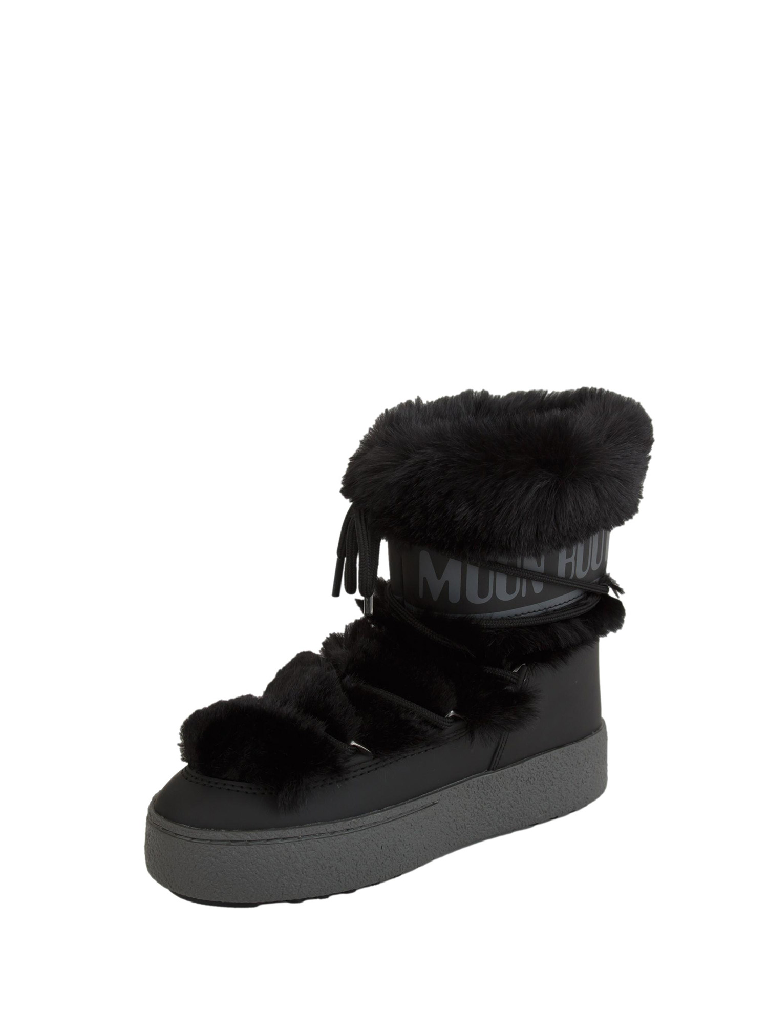 Stivale Ltrack Low Faux-Fur Moon Boot in pelle ed ecopelliccia neri
