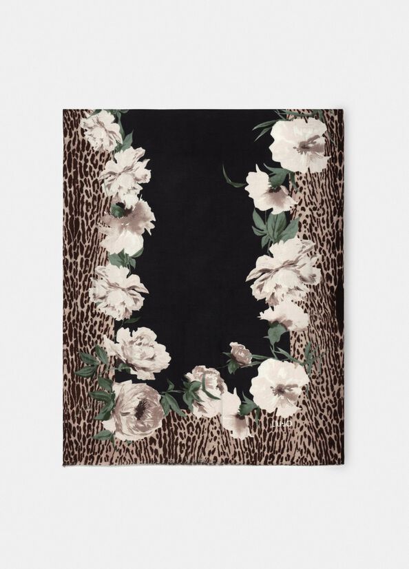 Stola Liu Jo in viscosa con stampa animalier floreale nera