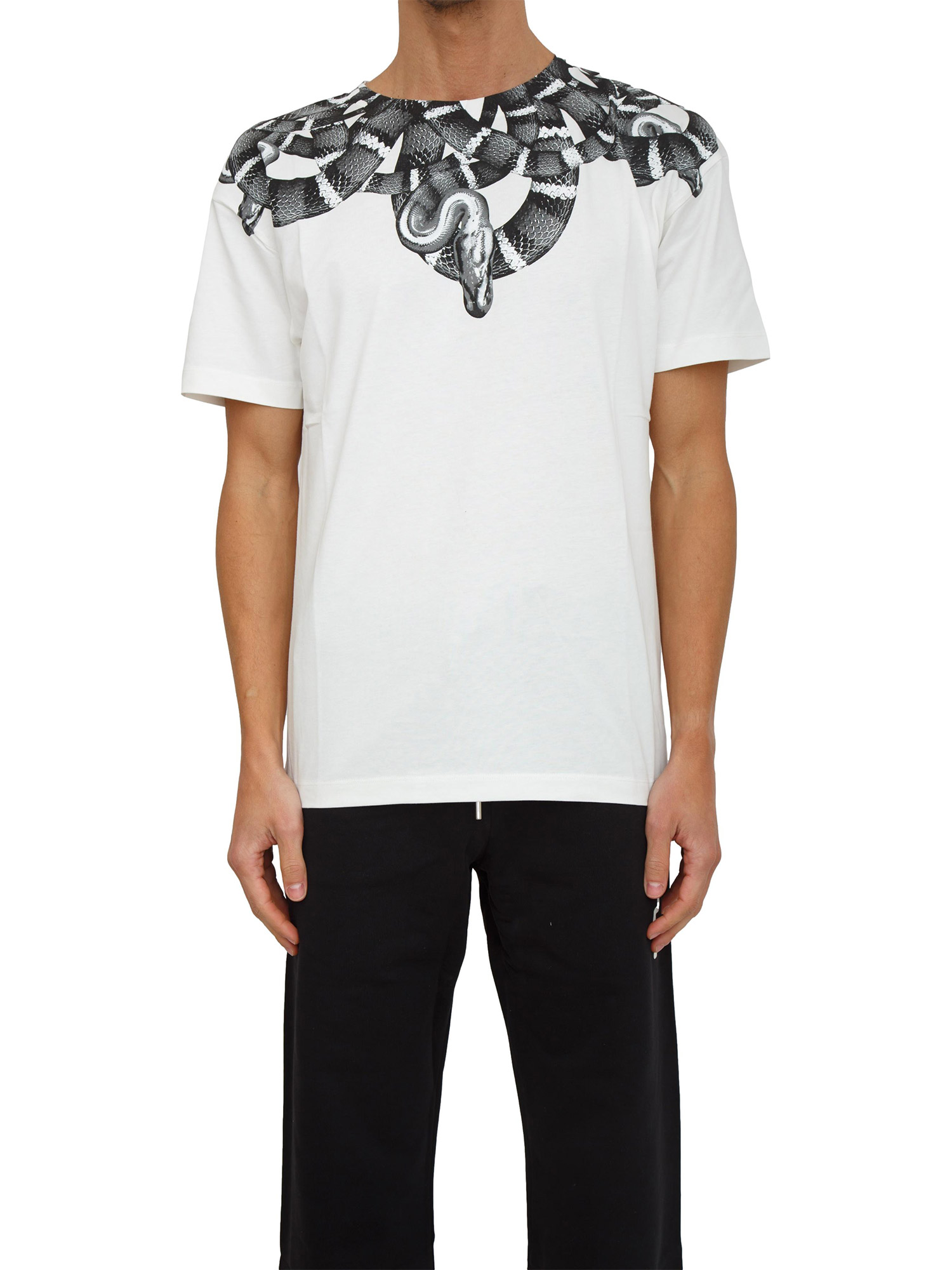 Brand: COUNTY OF MILANT-shirt uomo County of Milan realizzata in jersey di cotone con fit regolare. Design caratterizzato dalla stampa iconica “Snake” fronte e retro. Bella da indossare sia con la tuta che con un jeans e giubbino di pelle. Il modello è alto 1.90m e indossa la taglia M.