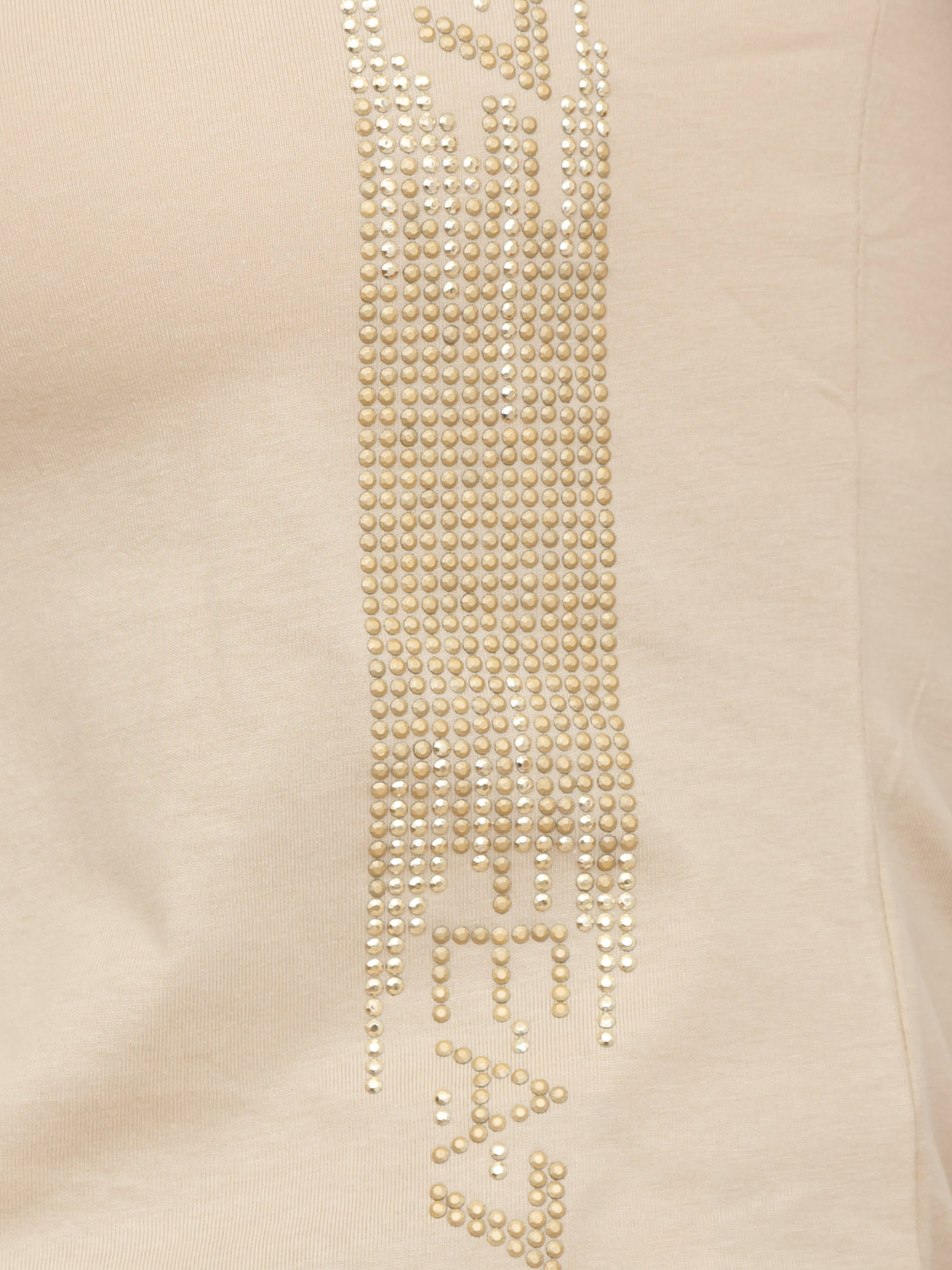 T-shirt donna EA7 Emporio Armani in cotone e modal beige con logo a micro borchie dorate