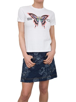 Brand: ETROT-shirt Etro donna dalla linea aderente realizzata in puro cotone e definita da una stampa con farfalla effetto stencil e dal logo ETRO a contrasto sul davanti. Design caratterizzato da girocollo con maniche corte e vestibilità slim così da poter essere indossata con ogni look giornaliero sportivo o casual.