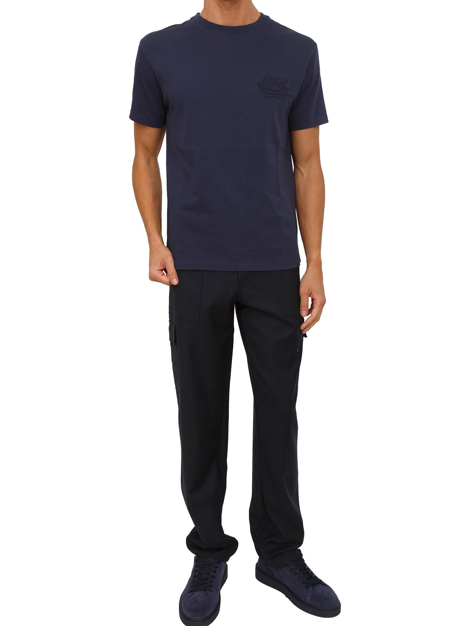 T-shirt girocollo Etro uomo in cotone blu con logo