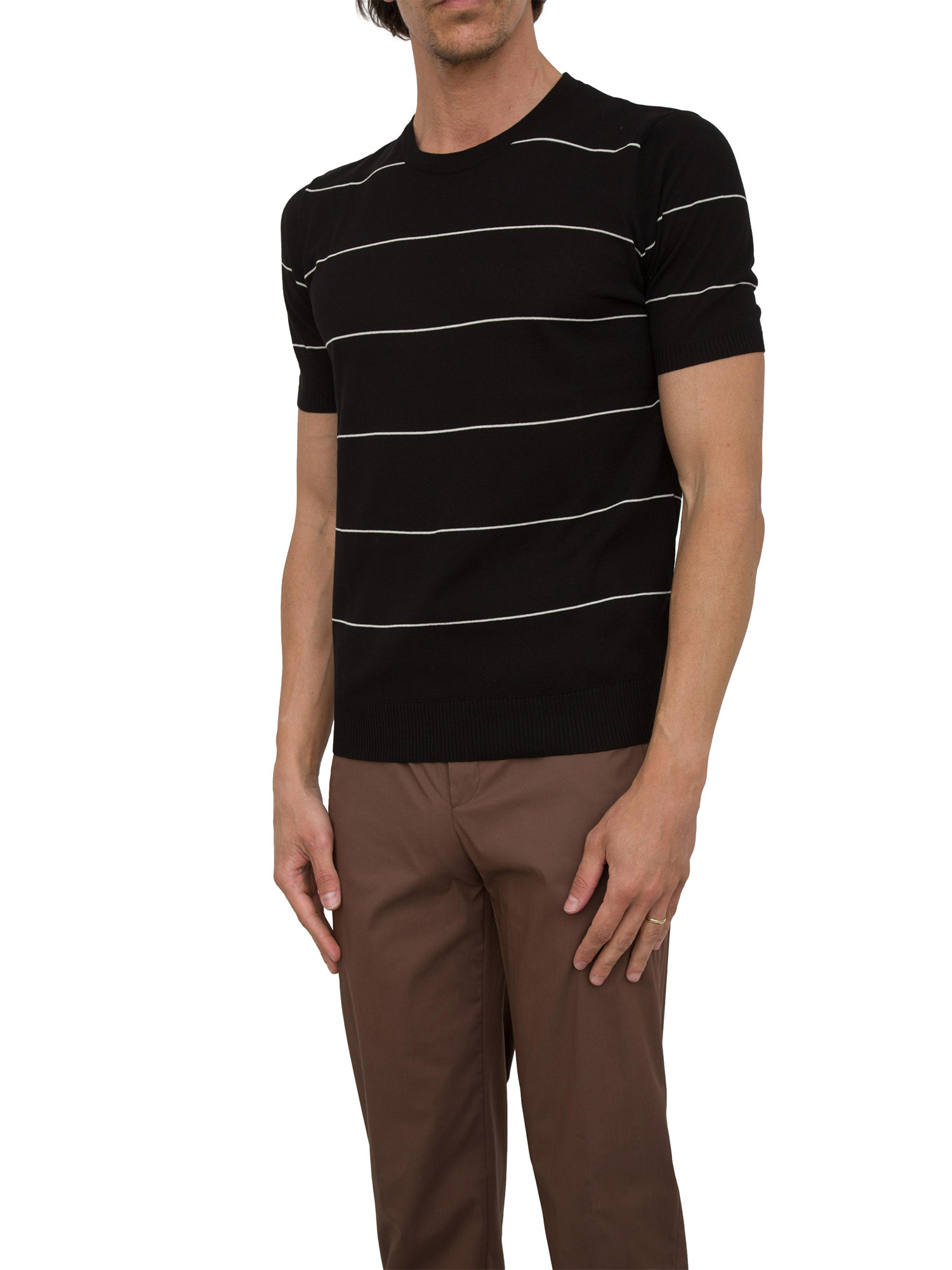 Maglia uomo a maniche corte Aiace Galassi in cotone nero con righe a contrasto