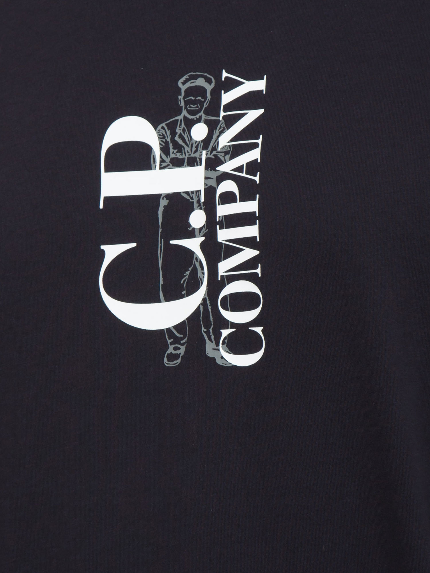Brand: C.P. COMPANYT-shirt a manica corta uomo C.P. Company realizzata in jersey di cotone 30/1 leggero, morbido e traspirante. La t-shirt presenta girocollo a costine e logo serigrafato sul petto. Comfort fit. Il modello è alto 1.90m e indossa la taglia L.