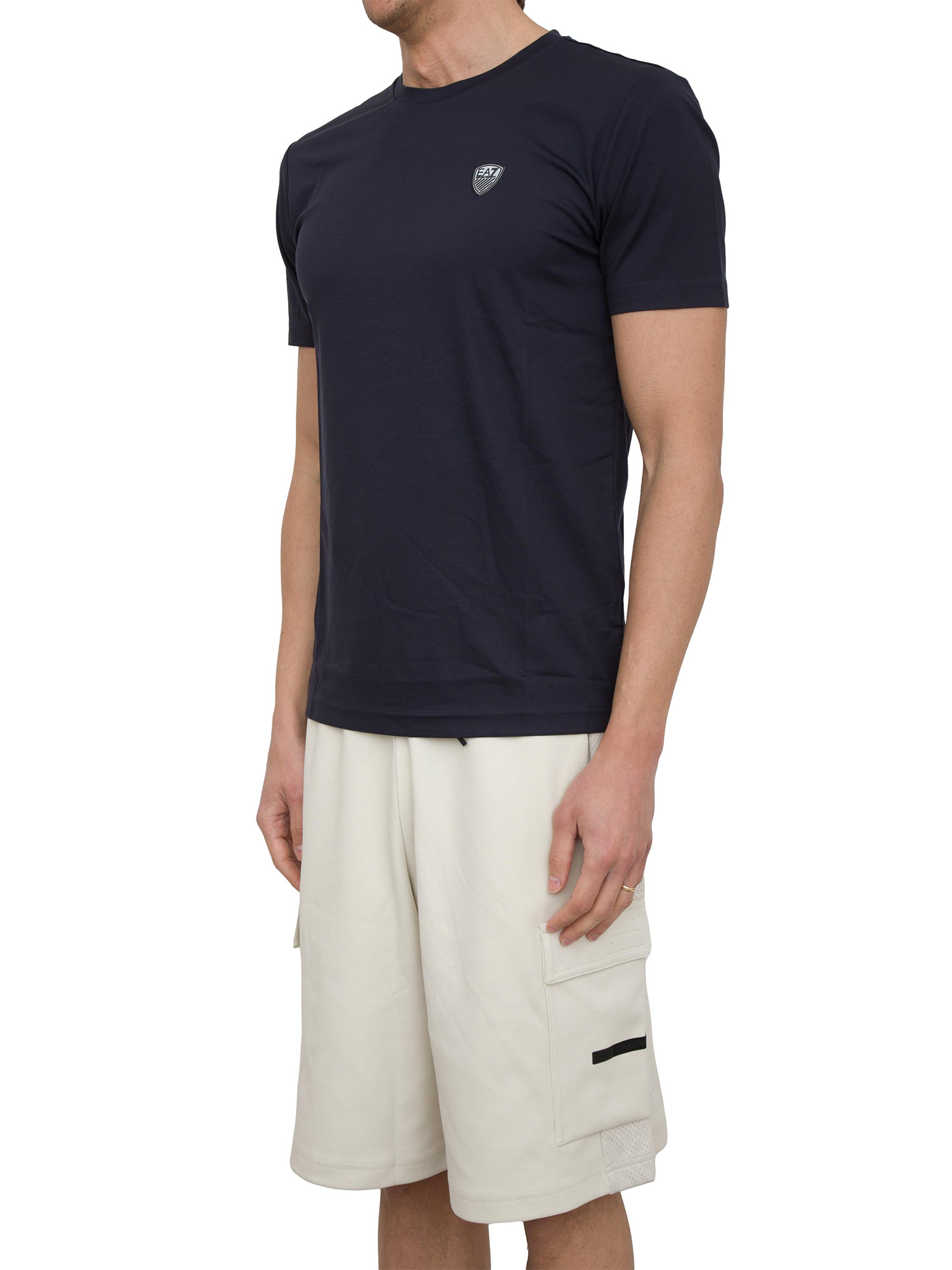 EA7 EMPORIO ARMANI T-shirt EA7 girocollo Premium Shield in misto viscosa stretch blu