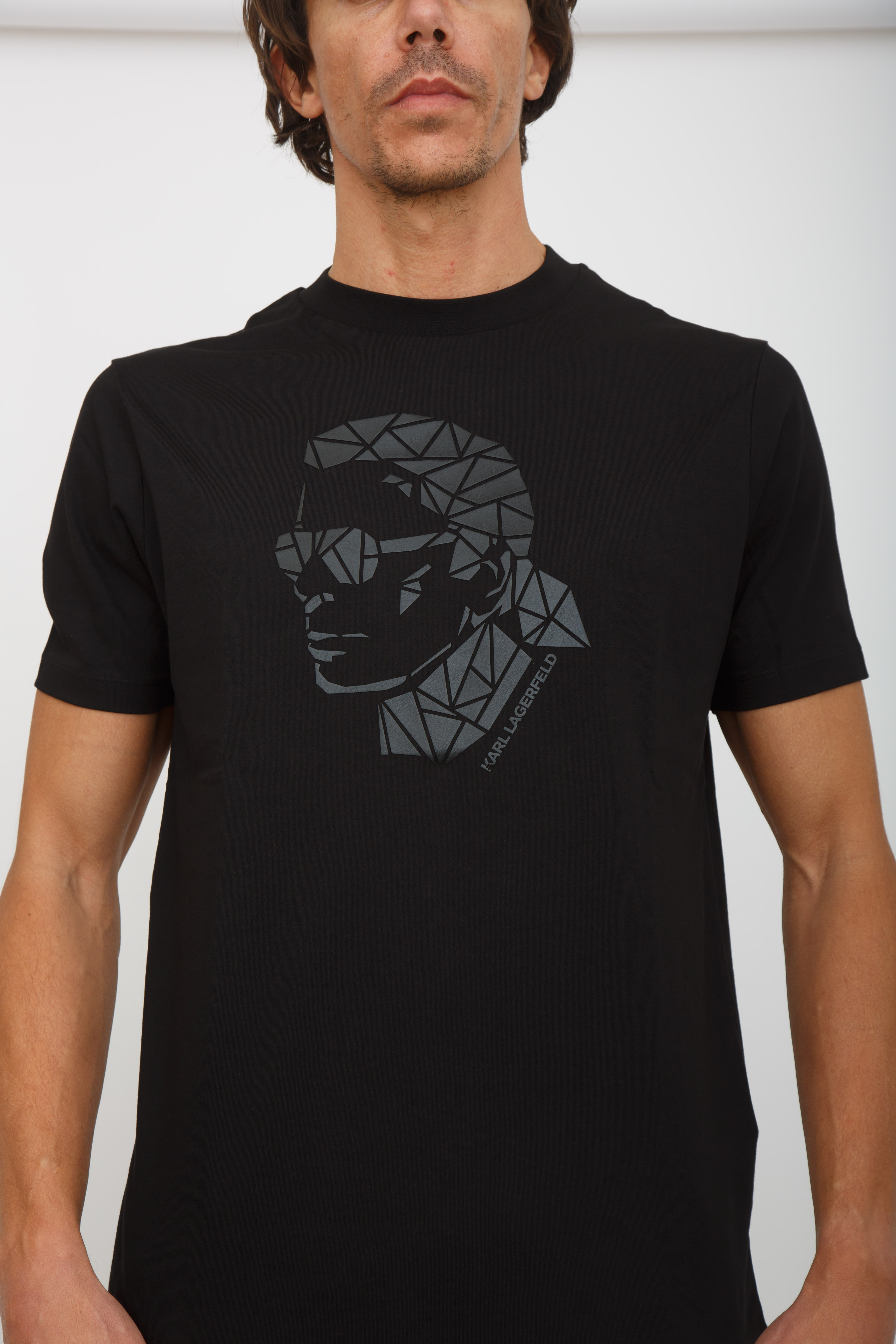 Brand: K.LAGERFELDT-shirt uomo Karl Lagerfeld realizzata in pregiato cotone con vestibilità slim e maniche corte. Design con volto Karl Lagerfeld applicato sul davanti con inserti gommati a struttura geometrica. Grintosa e cool da abbinare sotto una felpa o un giubbino di pelle. Il modello è alto 1.90m e indossa la taglia L.