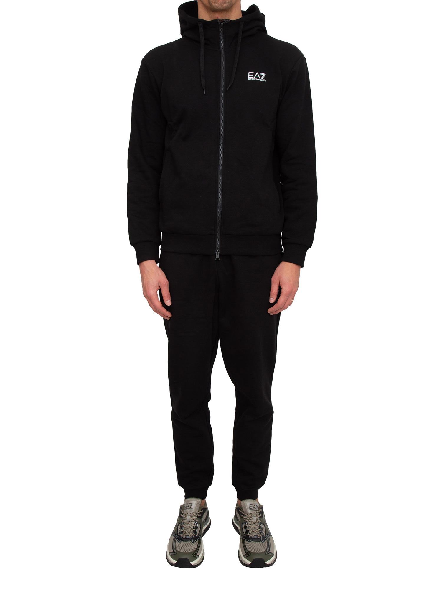 EA7 EMPORIO ARMANI Tuta sportiva nera EA7 con cappuccio Core Identity in misto cotone