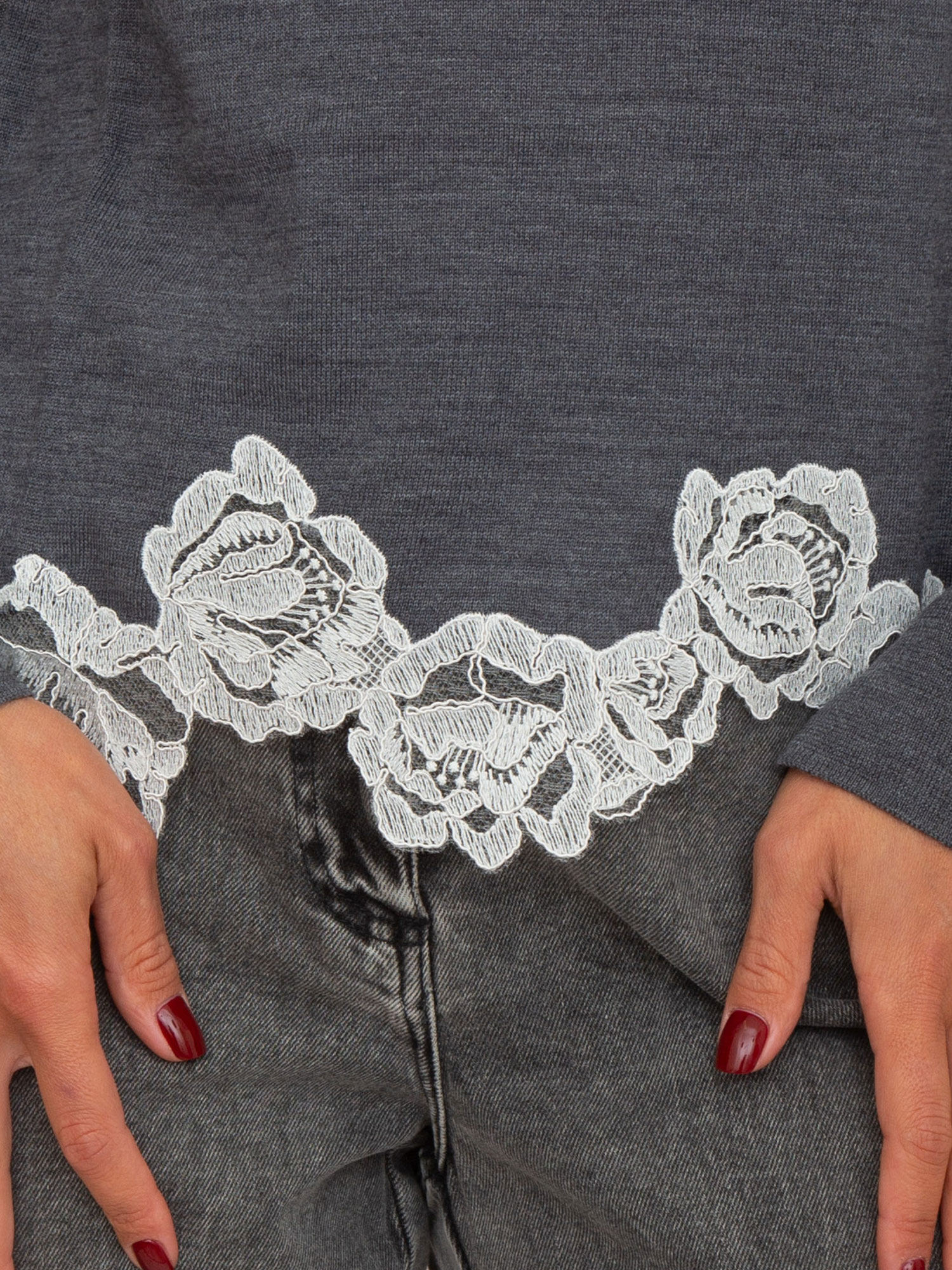 Twin-set Blugirl cardigan+lupetto in lana grigia con pizzo