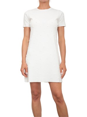 Abito corto Blugirl in maglia bianca con ricamo rose e corallini