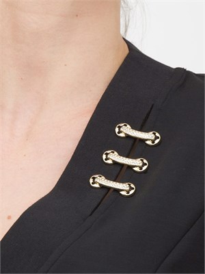 Brand: LIU JOAbito corto in scuba stretch, motivo cut out con dettagli gioiello, scollo a V, maniche corte e lettering LJ in metallo sul retro.La modella è alta 1.72 e indossa la taglia S.