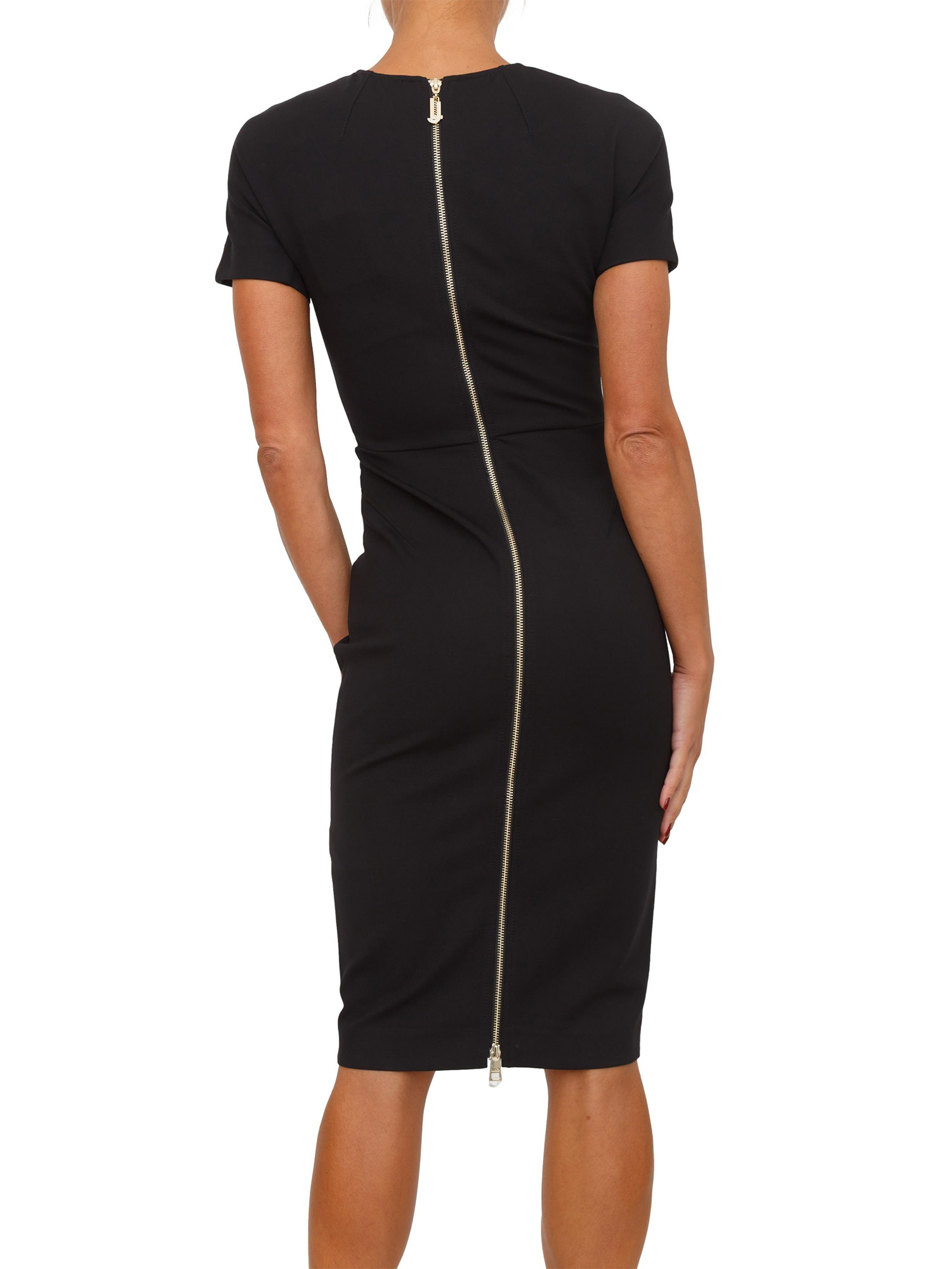 Brand: LIU JOAbito tubino Liu Jo realizzato in punto milano con fit aderente e chiusura zip a doppio cursore sul retro. Modello girocollo con maniche corte e lunghezza midi. La modella è alta 1.72 e indossa la taglia 40.