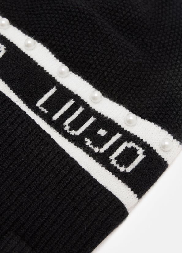 Berretto beanie Liu Jo donna in viscosa nera con perle