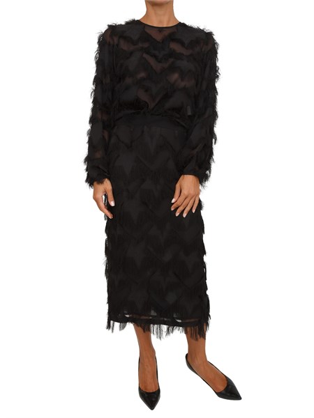 Blusa Marella in georgette nera lavorata in fil coupé effetto frangia