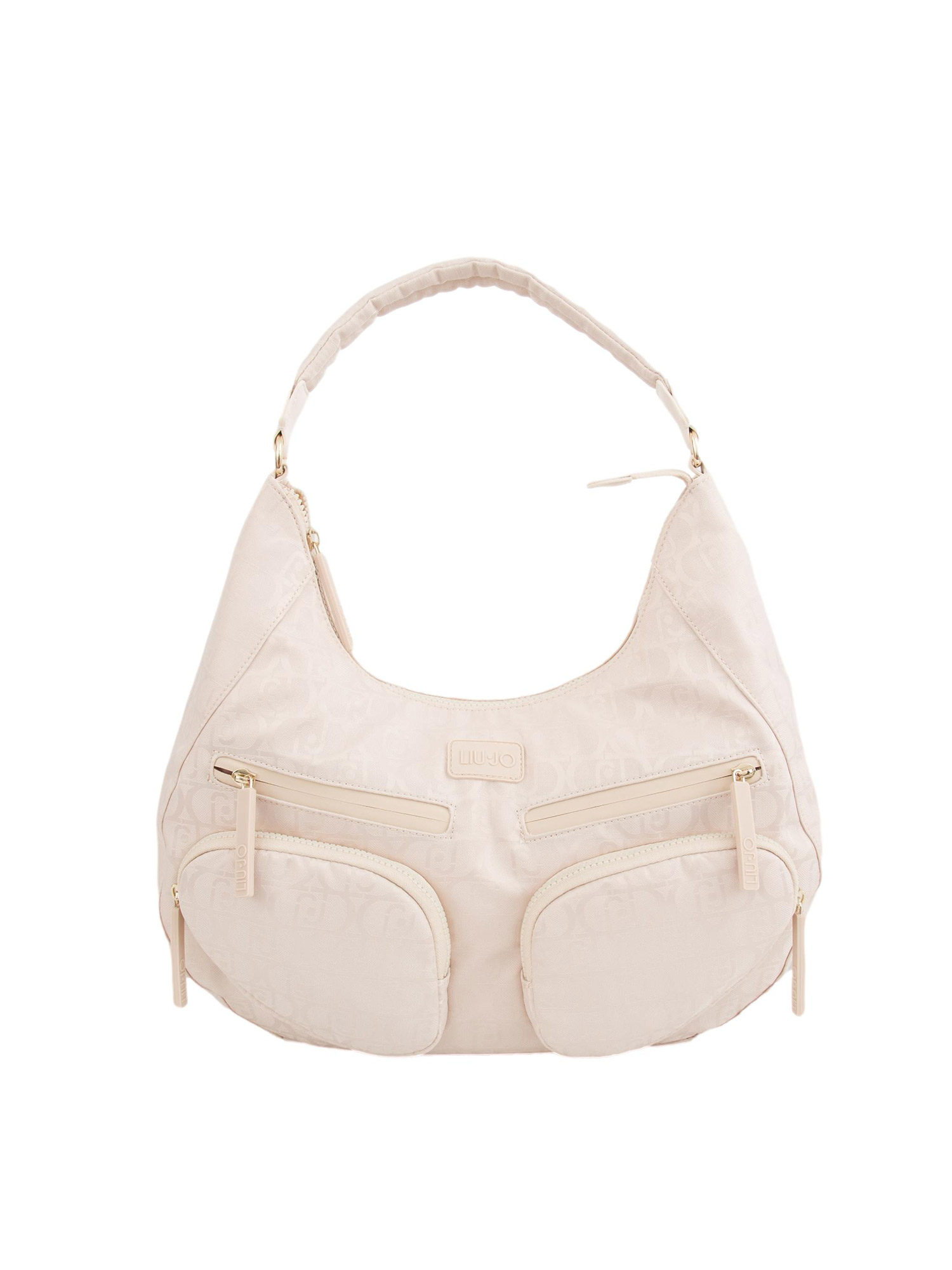 Borsa a spalla beige Liu Jo in nylon con logo all over