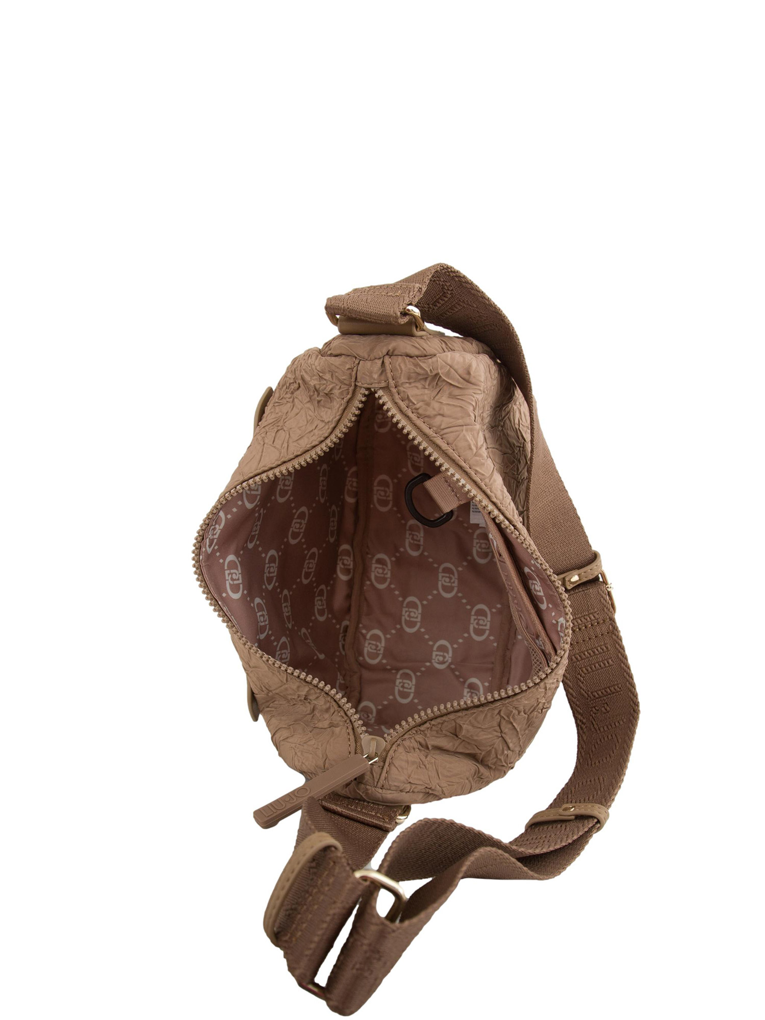 Brand: LIU JOBorsa a tracolla Liu Jo realizzata in nylon marrone con tasca frontale e zip tono su tono. Desing arricchito da patch logo ricamato sul davanti, tracolla regolabile in gros grain ed effetto stropicciato che dona uno stile inconfondibile. Misure: 26 x 9 x 20 cm.