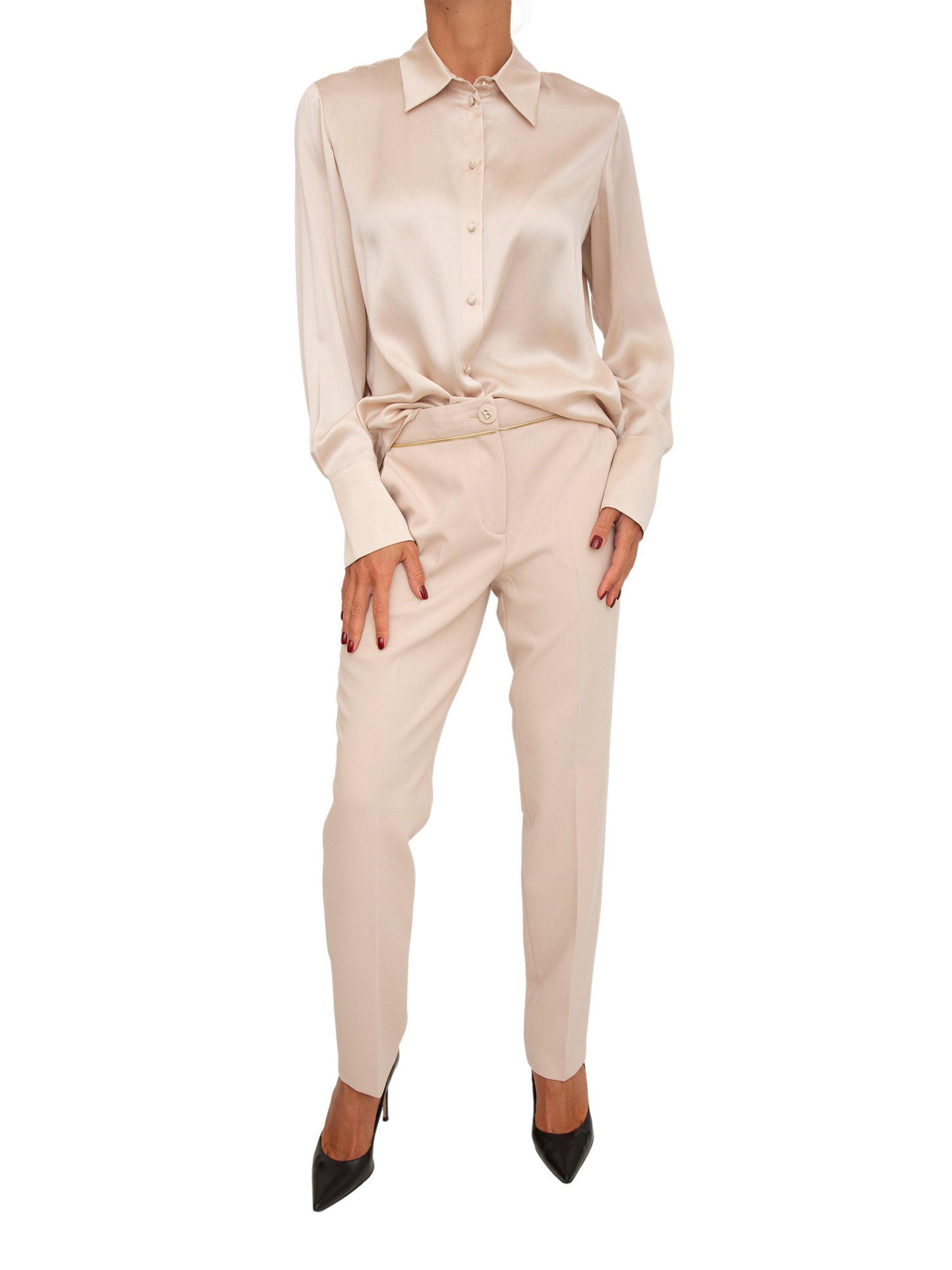 Brand: BLUGIRLEssential del guardaroba da interpretare in una miriade di look. Camicia Blugirl regular in raso di seta lavata, chiusura con bottoni ricoperti, maniche lunghe con polsi e bottoni che creano spacchetto e taglio carré sul retro. La modella è alta 1.72 e indossa la taglia 40.