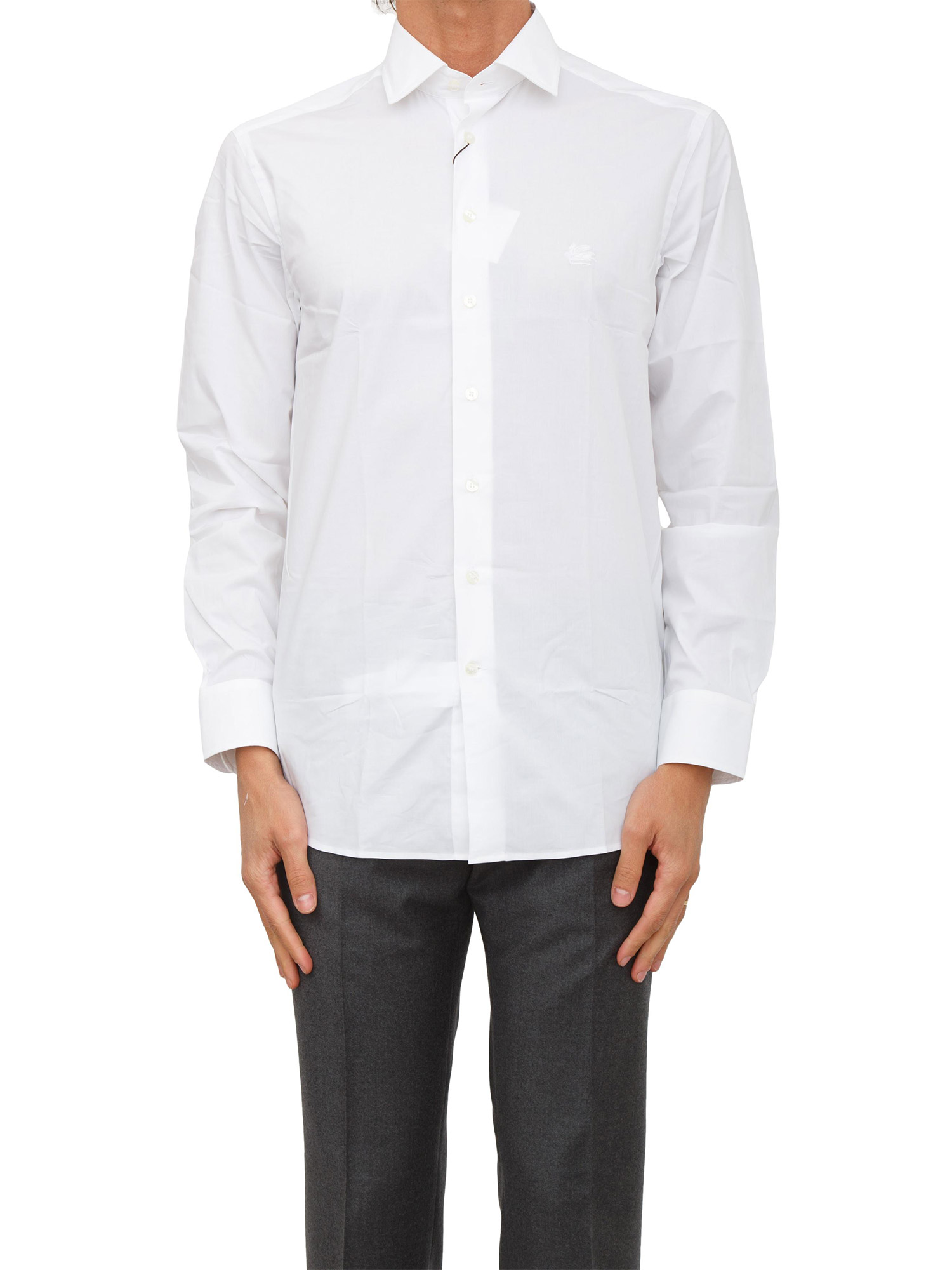 Brand: ETROCamicia a manica lunga Etro uomo realizzata in puro cotone con vestibilità regular e chiusura con bottoni. Arricchita da monogram ETRO e Pegaso ricamati in tono sul petto. Ideale sotto ogni outfit. Il modello è alto 1.90m e indossa la taglia 40.