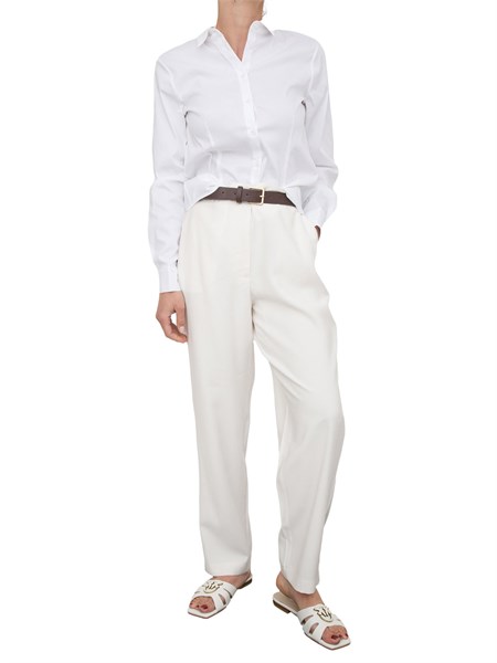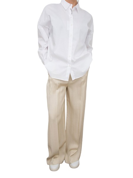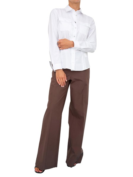 Brand: MARELLACamicia Marella dalla silhouette essenziale realizzata in popeline di cotone, linea aderente con fondo arrotondato, collo a camicia, maniche lunghe con polsino e bottone, chiusura con bottoni nascosti e logo ricamato sul polsino destro.La modella è alta 1.80m e indossa la taglia 40.