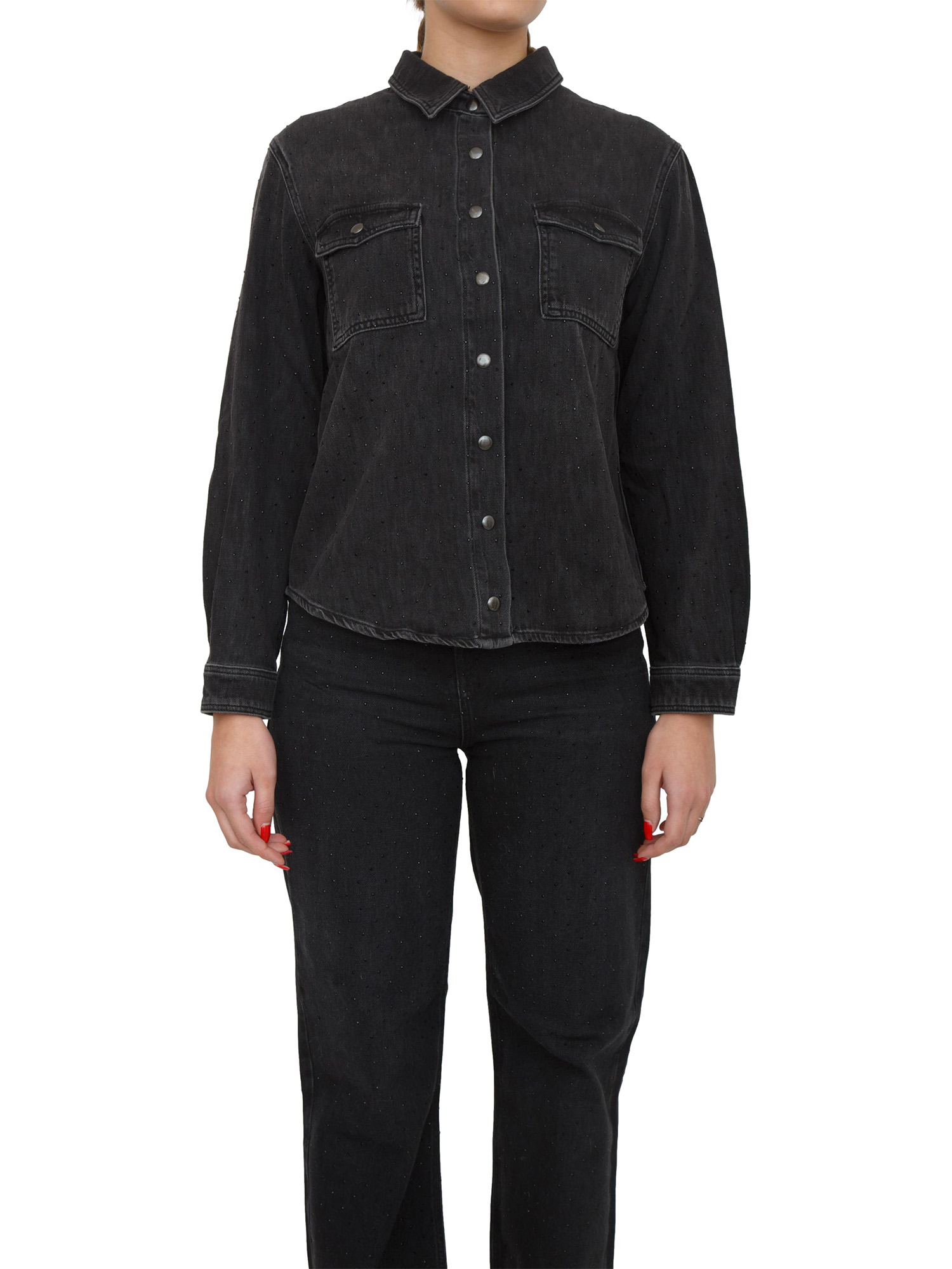 TWIN-SET Camicia nera Twinset in denim stretch con strass