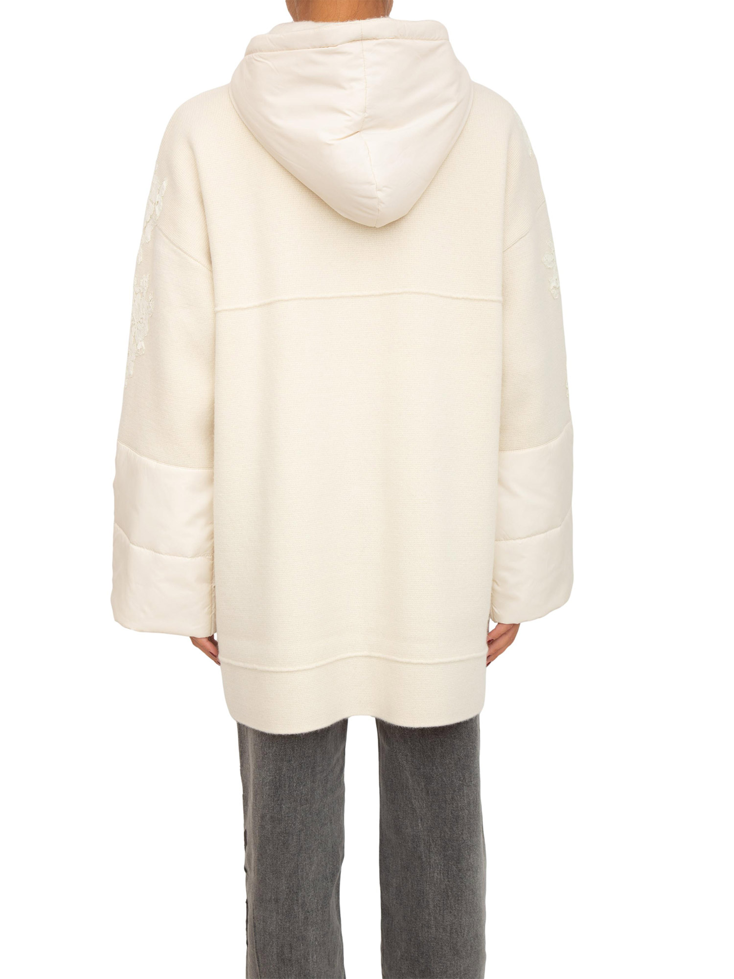 Cappotto Blugirl in lana avorio e duchesse con ricamo e cristalli