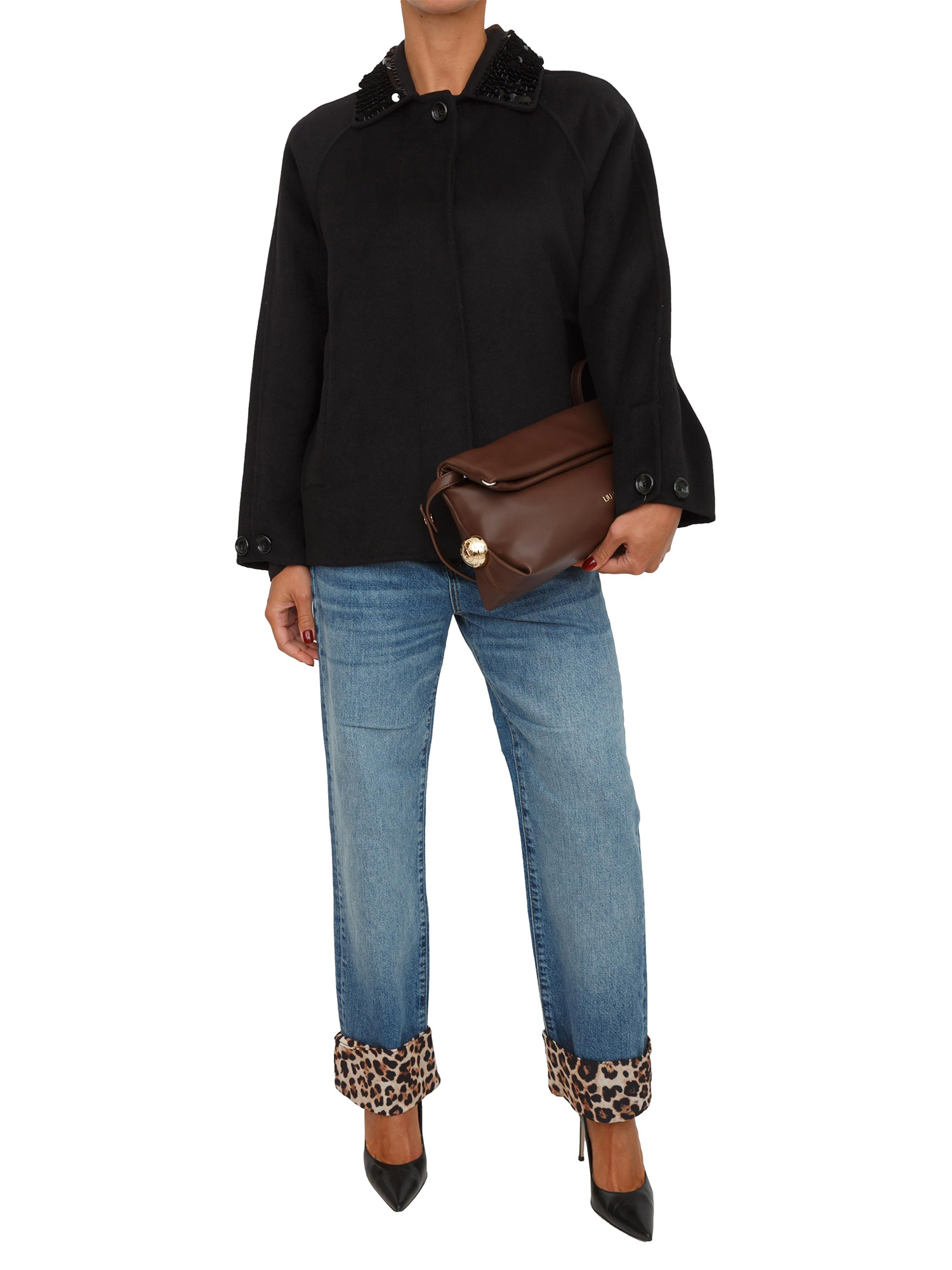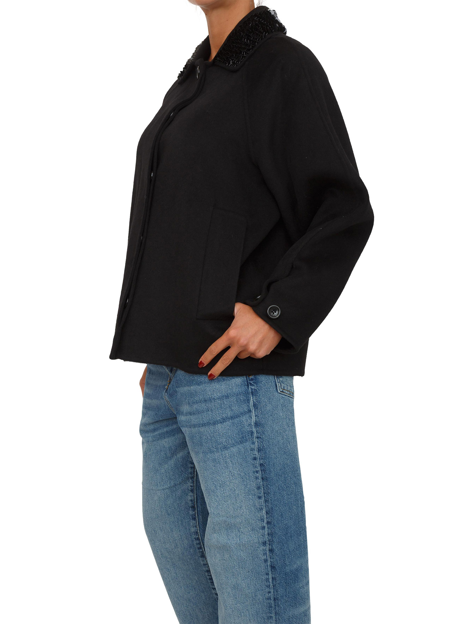 Cappotto corto Liu Jo donna in misto lana nero con paillettes su collo