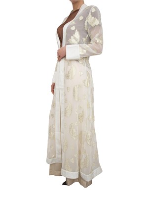 Brand: FRACOMINAKaftano lungo Fracomina con vestibilità regular ed inserti in lurex. Ideale come capospalla sopra un jeans o un pantalone elegante, oppure come copricostume per le tue serate estive.La modella è alta 1.72 e indossa la taglia S.