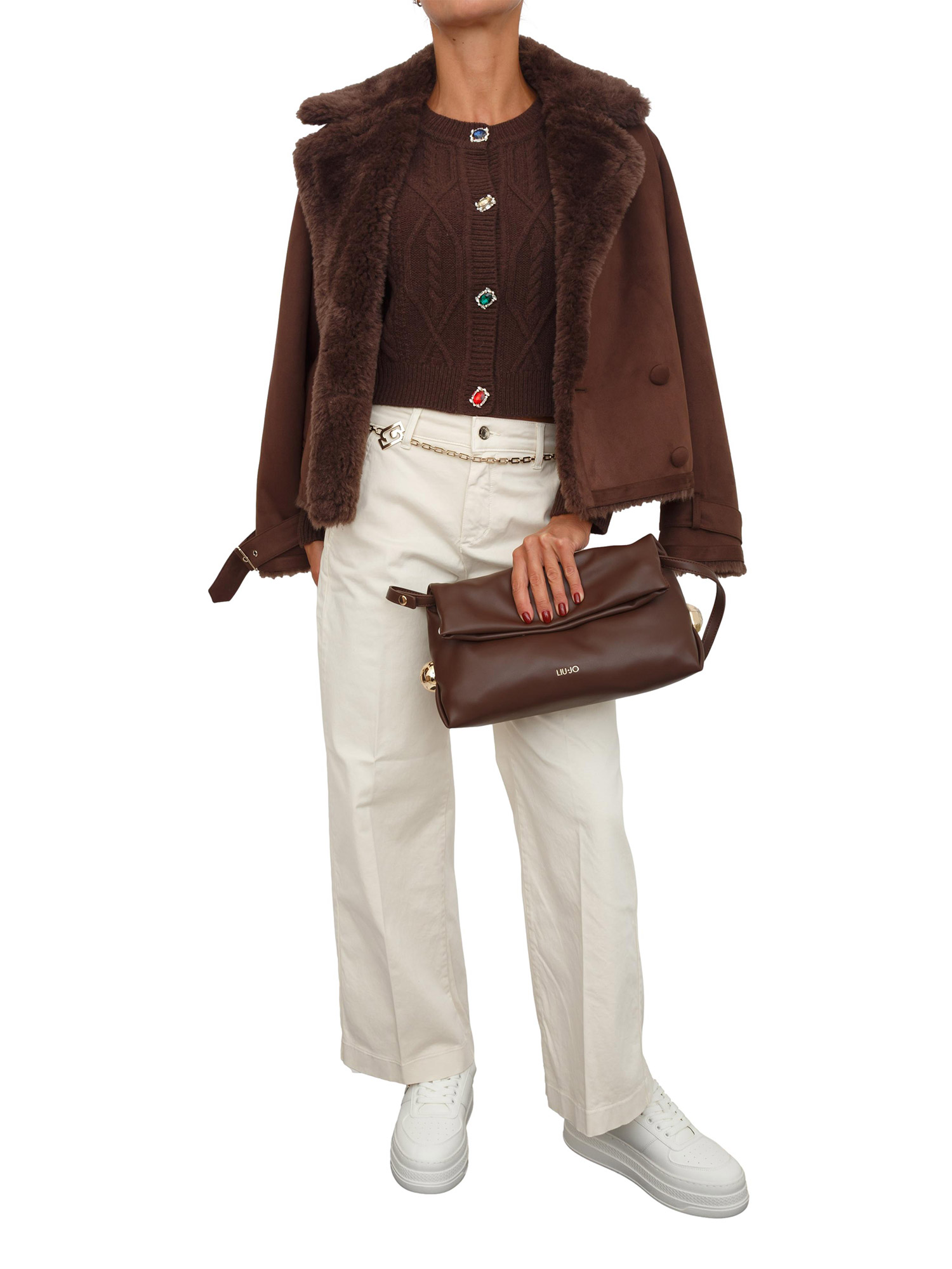 Cardigan in maglia Liu Jo in lana marrone con bottoni gioiello