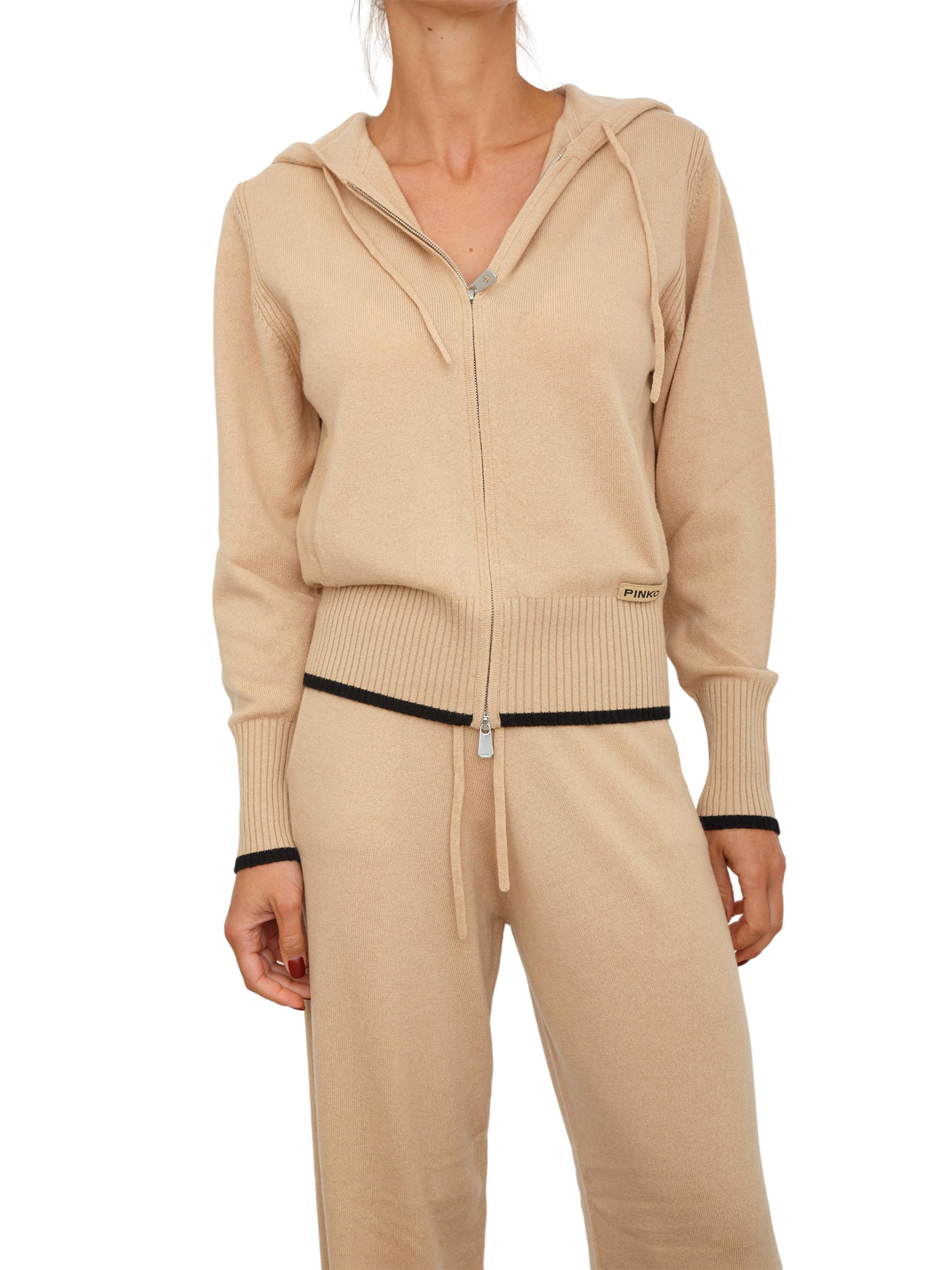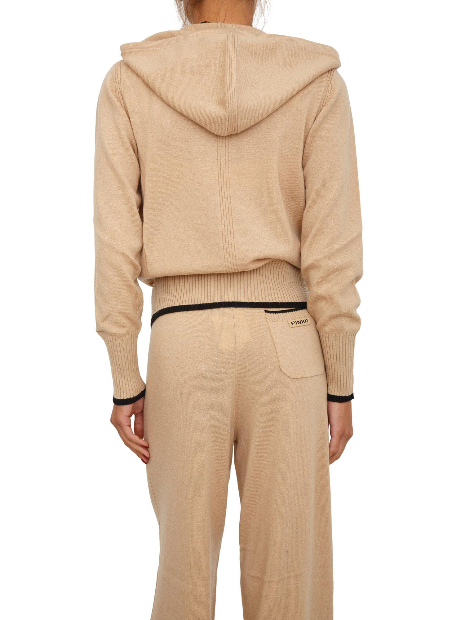 Brand: PINKOCardigan in maglia Pinko modello a felpa con cappuccio e chiusura zip. Realizzato in misto lana e cashmere con profilo a contrasto sul fondo. Stupendo con il suo pantalone. La modella è alta 1.72 e indossa la taglia S.