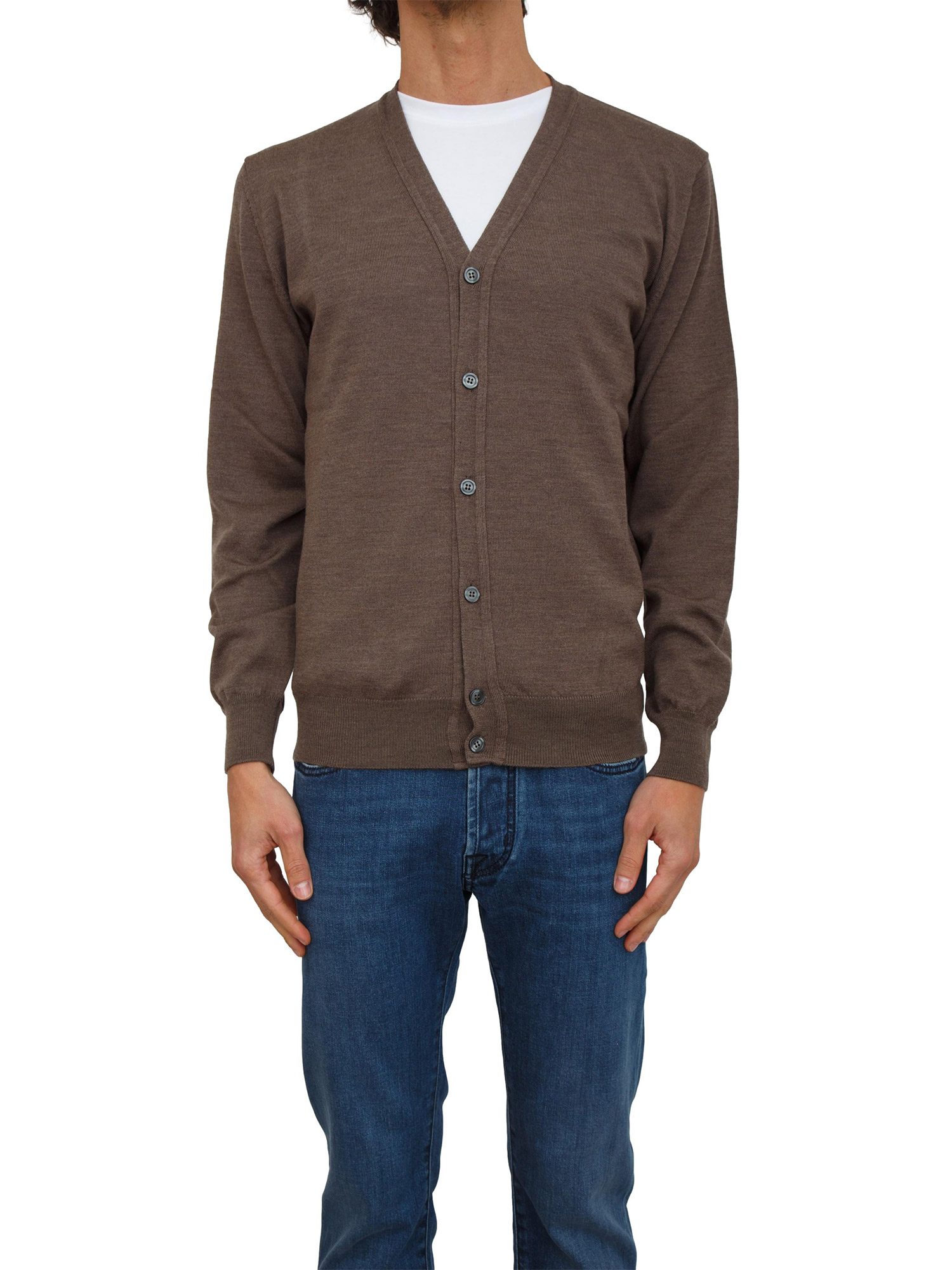 Brand: AIACE GALASSICardigan uomo Aiace Galassi a manica lunga realizzata in lana fine che rappresenta un perfetto equilibrio tra eleganza e artigianalità d'eccellenza. La struttura leggera e incredibilmente morbida, conferisce al capo un tocco raffinato e sofisticato. Il modello è alto 1.90m e indossa la taglia 52.