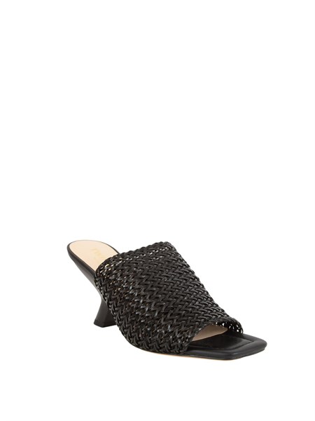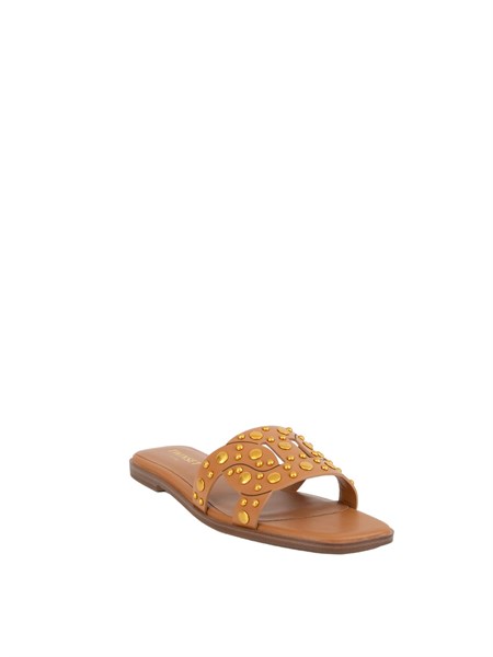 Brand: TWIN-SETSandali slide in pelle con fascia sagomata effetto Oval T e motivo di borchie. Altezza fondo 1,5 cm