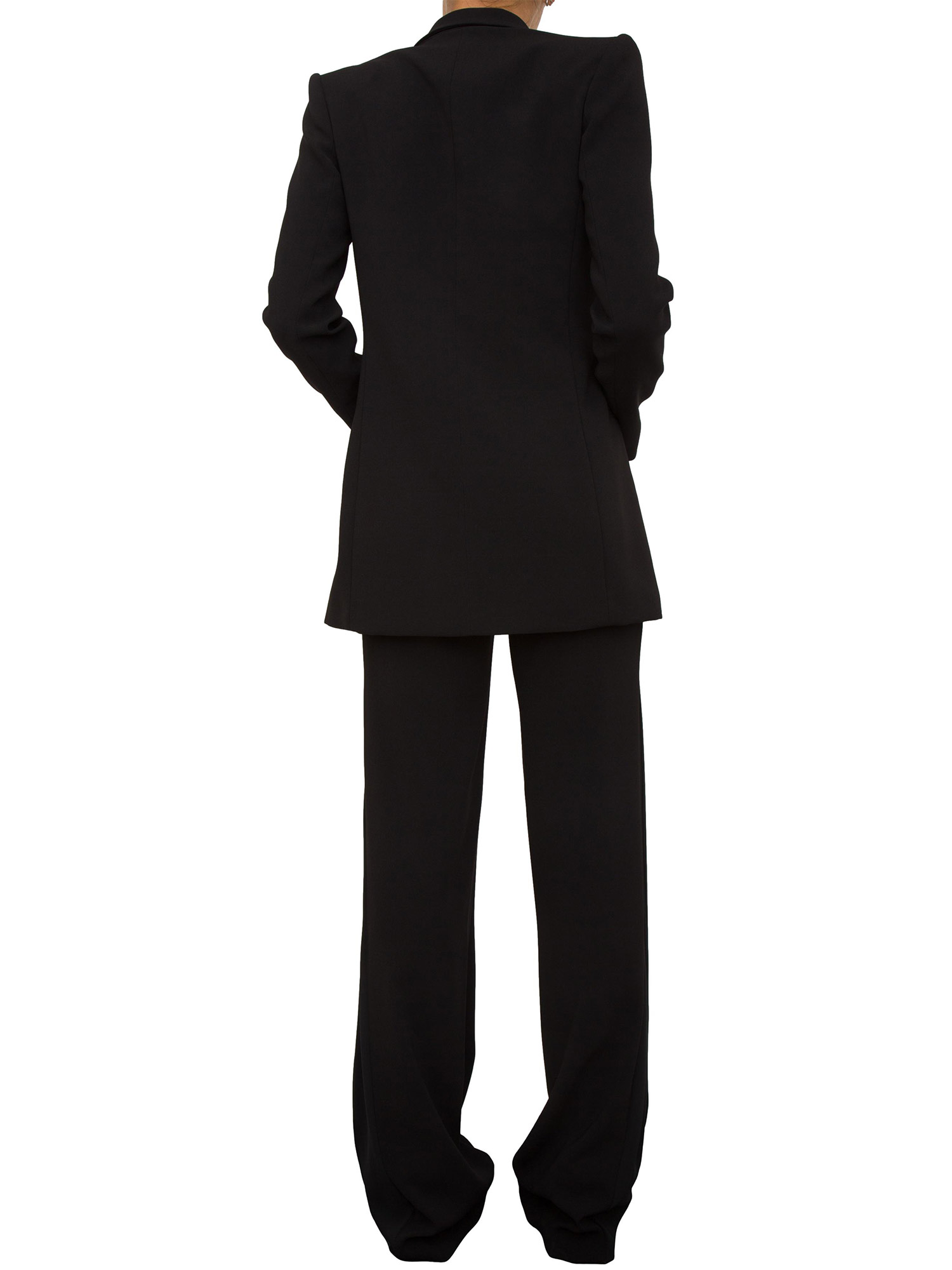 Brand: ELISABETTA FRANCHITailleur in crêpe fluido composto da giacca con spalle strutturate e collo a lancia e pantalone svasato al fondo grazie all'inserto in voile sulle gambe.