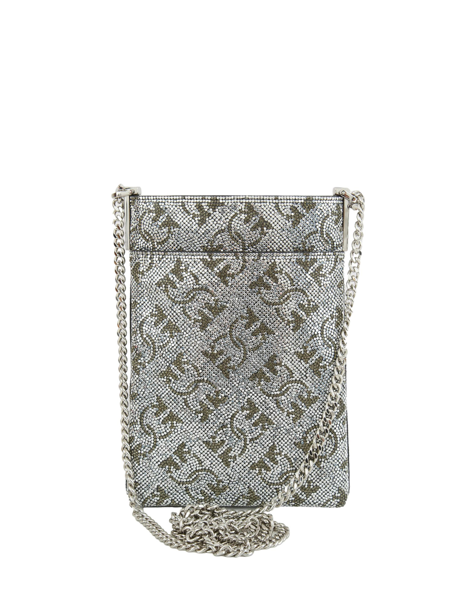 Custodia smartphone Pinko in pelle con strass argento