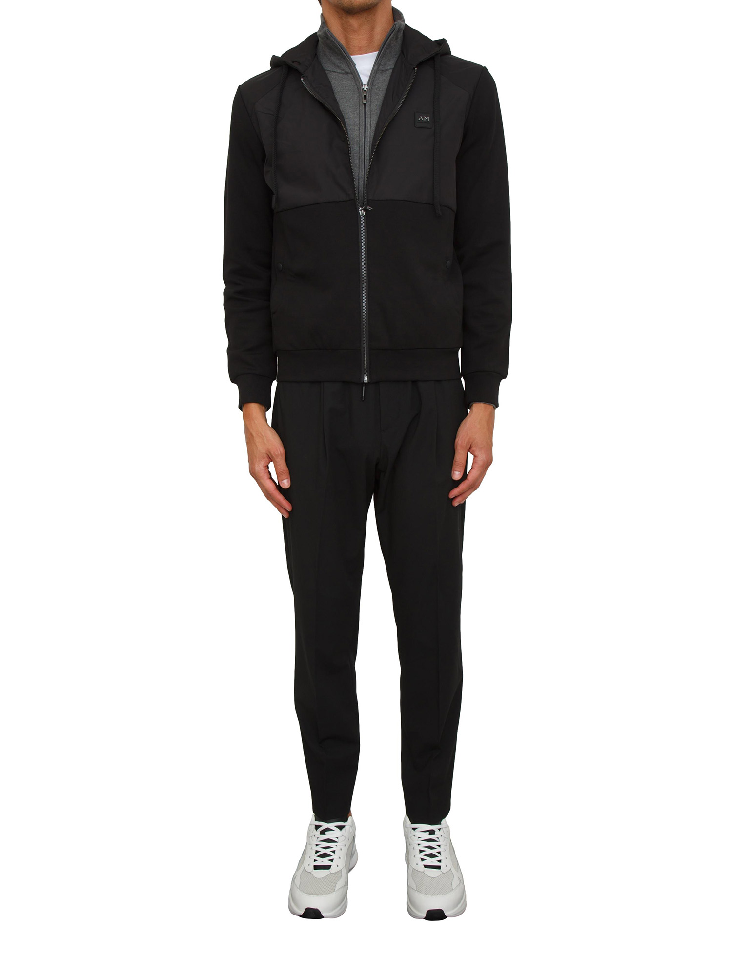 Felpa Antony Morato con zip e cappuccio in cotone interlock e tessuto tecnico nero