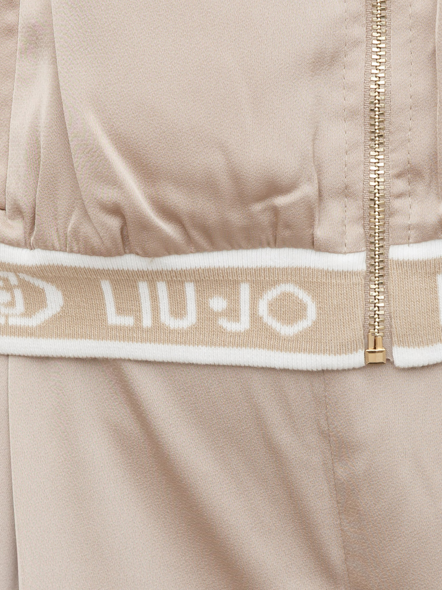 Brand: LIU JOFelpa bomber Liu Jo donna realizzata in raso con dettagli in maglia con logo jacquard. Colletto bomber, tasche laterali e tirazip logata. La modella è alta 1.72 e indossa la taglia XS.