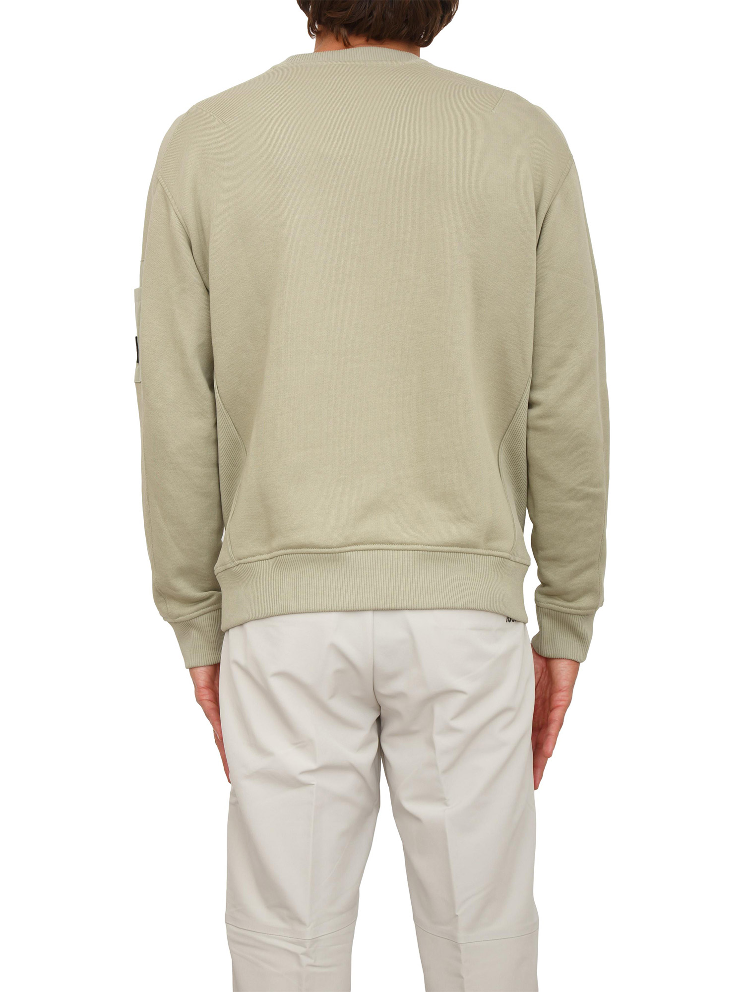 Felpa Boss uomo in misto cotone verde con tasca e zip su manica