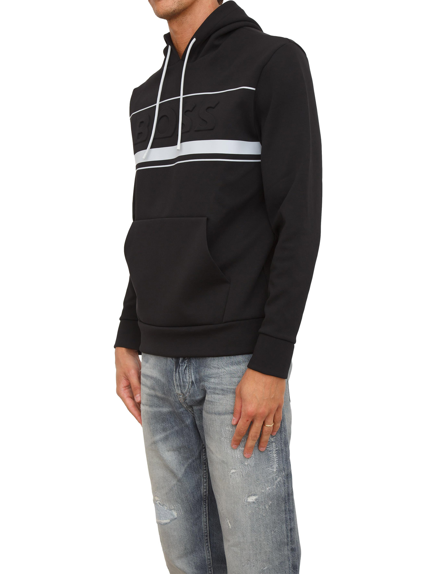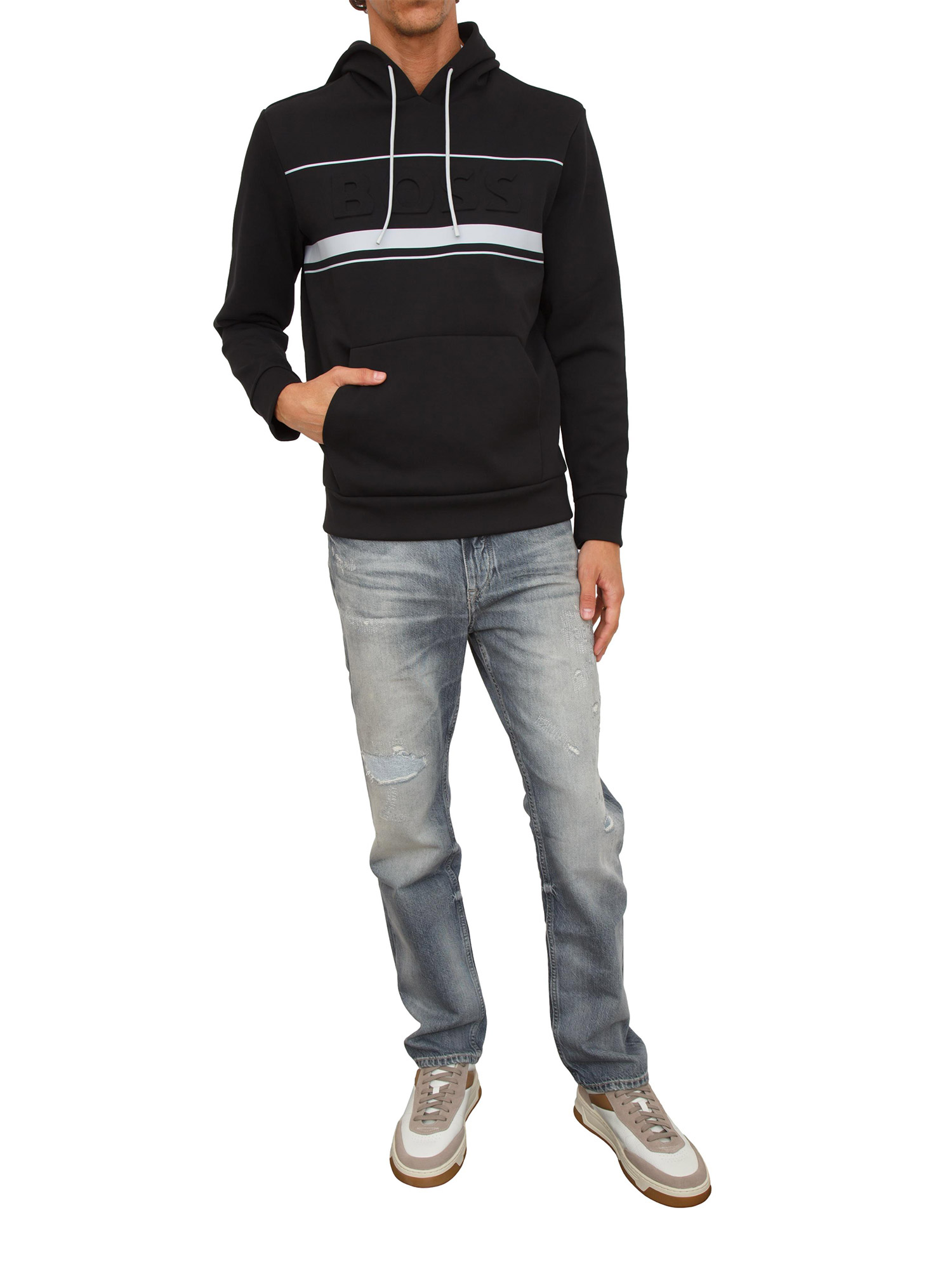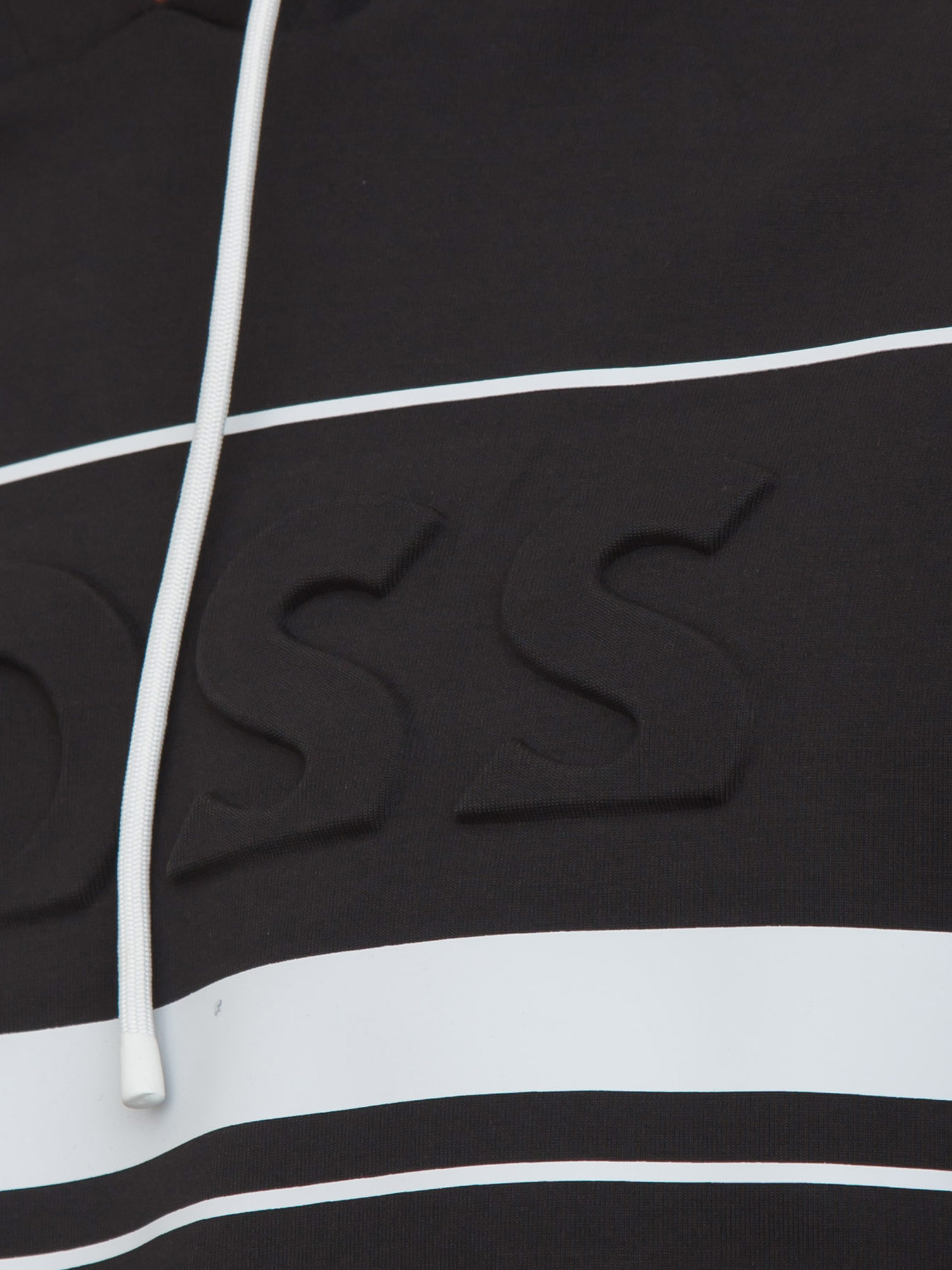 Brand: BOSSRealizzata in misto cotone intrecciato con tessuto elasticizzato, questa felpa con cappuccio BOSS Uomo straight fit è un capo casual moderno. Logo sagomato, tasche frontali e righe sportive. Il modello è alto 1.90m e indossa la taglia M.