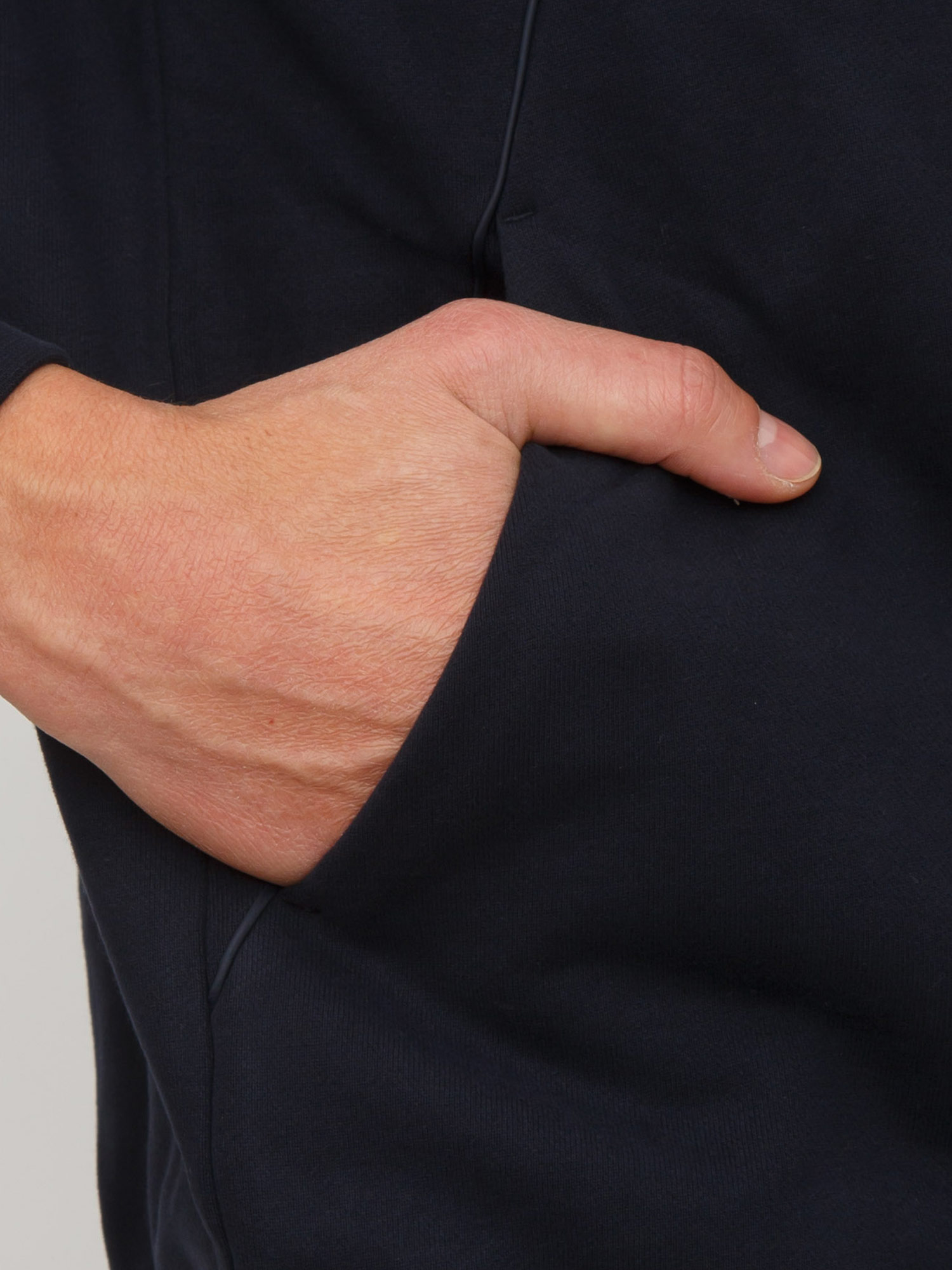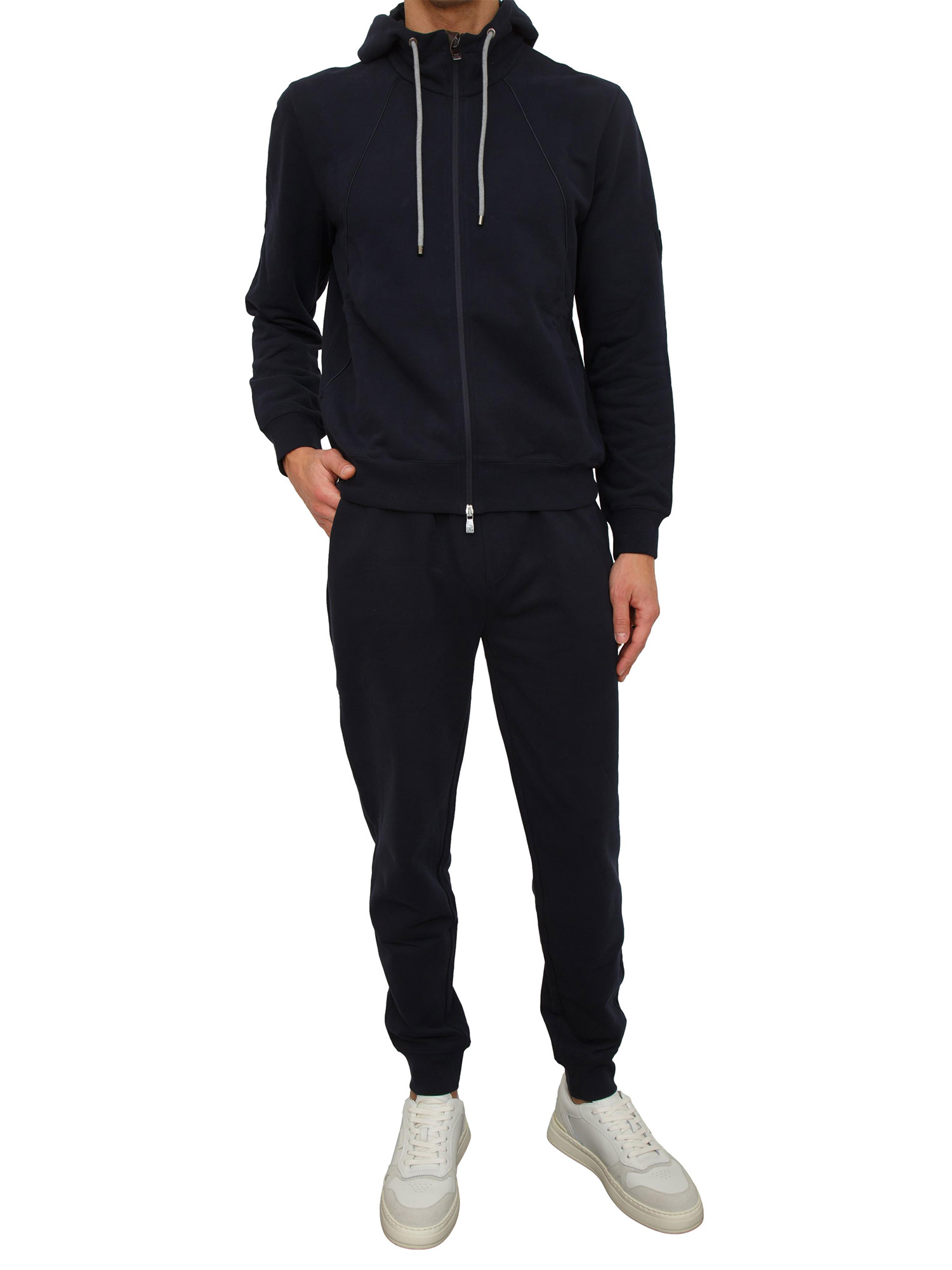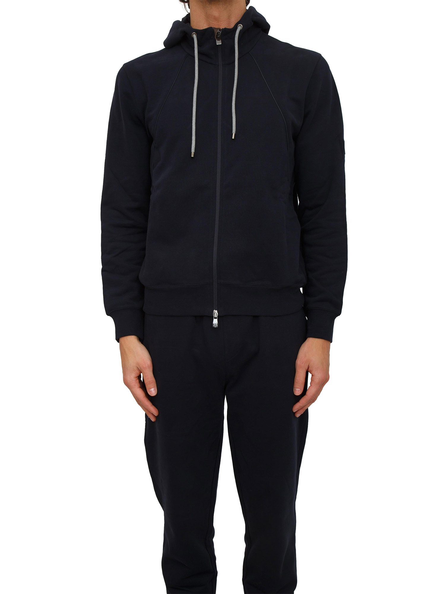 Brand: CORNELIANIFelpa full zip Cornelianui realizzata in caldo cotone e dotata di cappuccio con coulisse e lacci a contrasto. Vestibilità regular con cuciture tono su tono, comode tasche laterali e fondi lavorati a costine. Il modello è alto 1.90m e indossa la taglia 50.