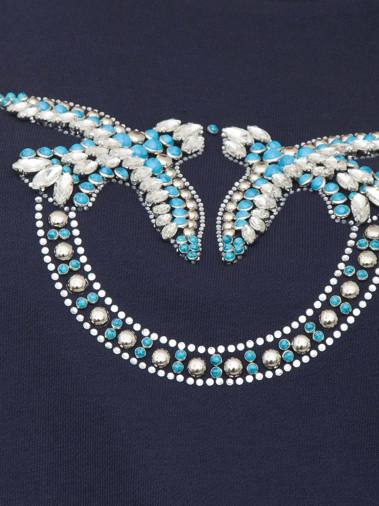 Felpa Pinko blu con girocollo e ricamo gioiello Love Birds