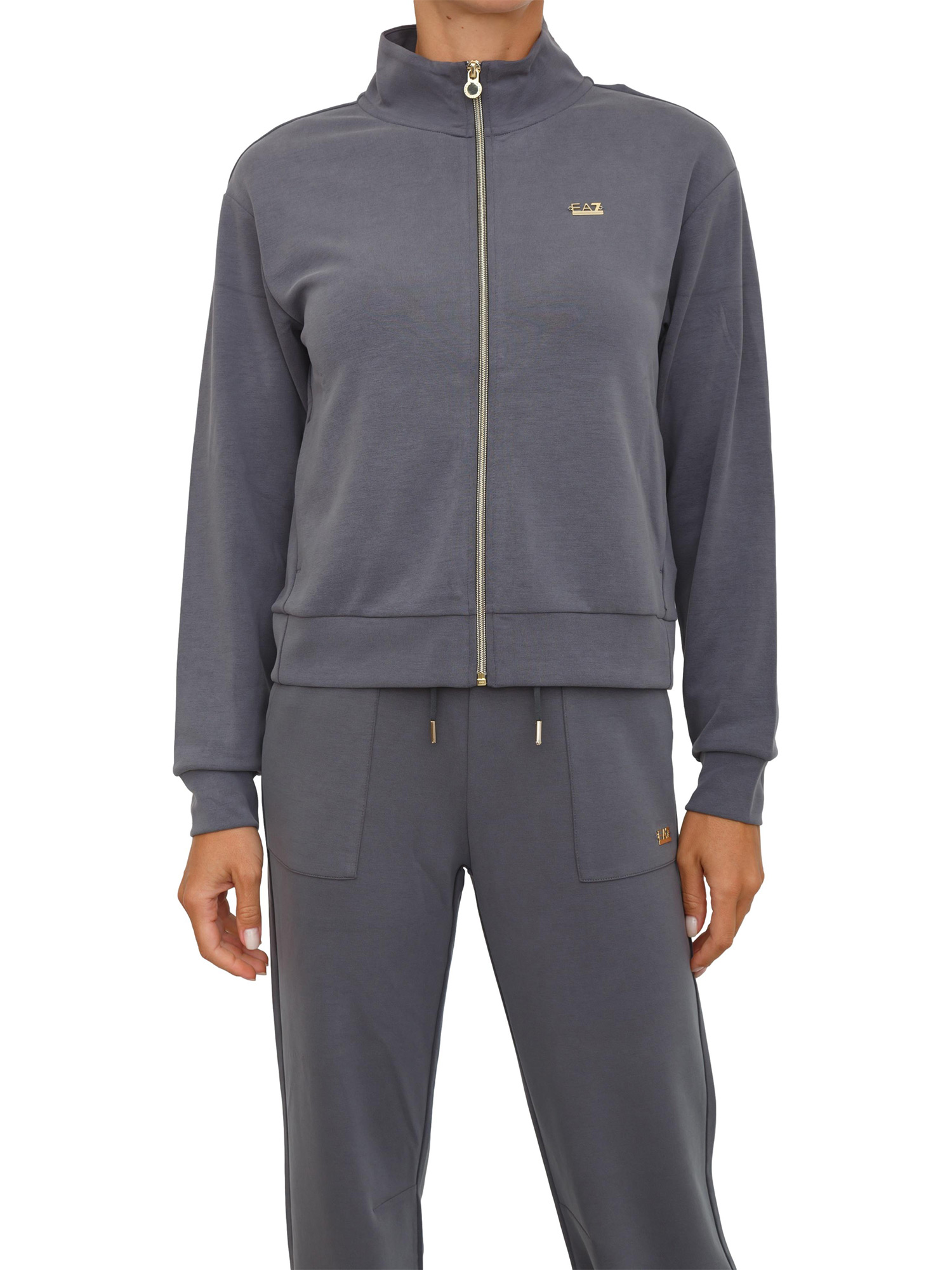 -     Brand: EA7 EMPORIO ARMANIFelpa EA7 Emporio Armani con zip realizzata in misto modal stretch. Design dal fit dritto e collo alto, comoda da indossare sotto un giubbino di pelle o imbottito. Femminile e versatile, questa felpa è perfetta per i tuoi momenti di sport e relax. La modella è alta 1.72 e indossa la taglia S.
