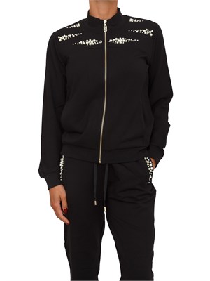 Brand: LIU JOFelpa Liu Jo donna realizzata in misto viscosa stretch con collo alto e perle applicate sulle spalle. Dotata di tasche sui lati e tirazip logata. La modella è alta 1.72 e indossa la taglia XS.