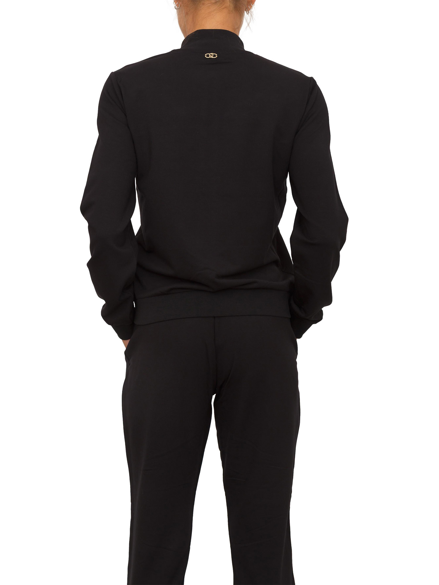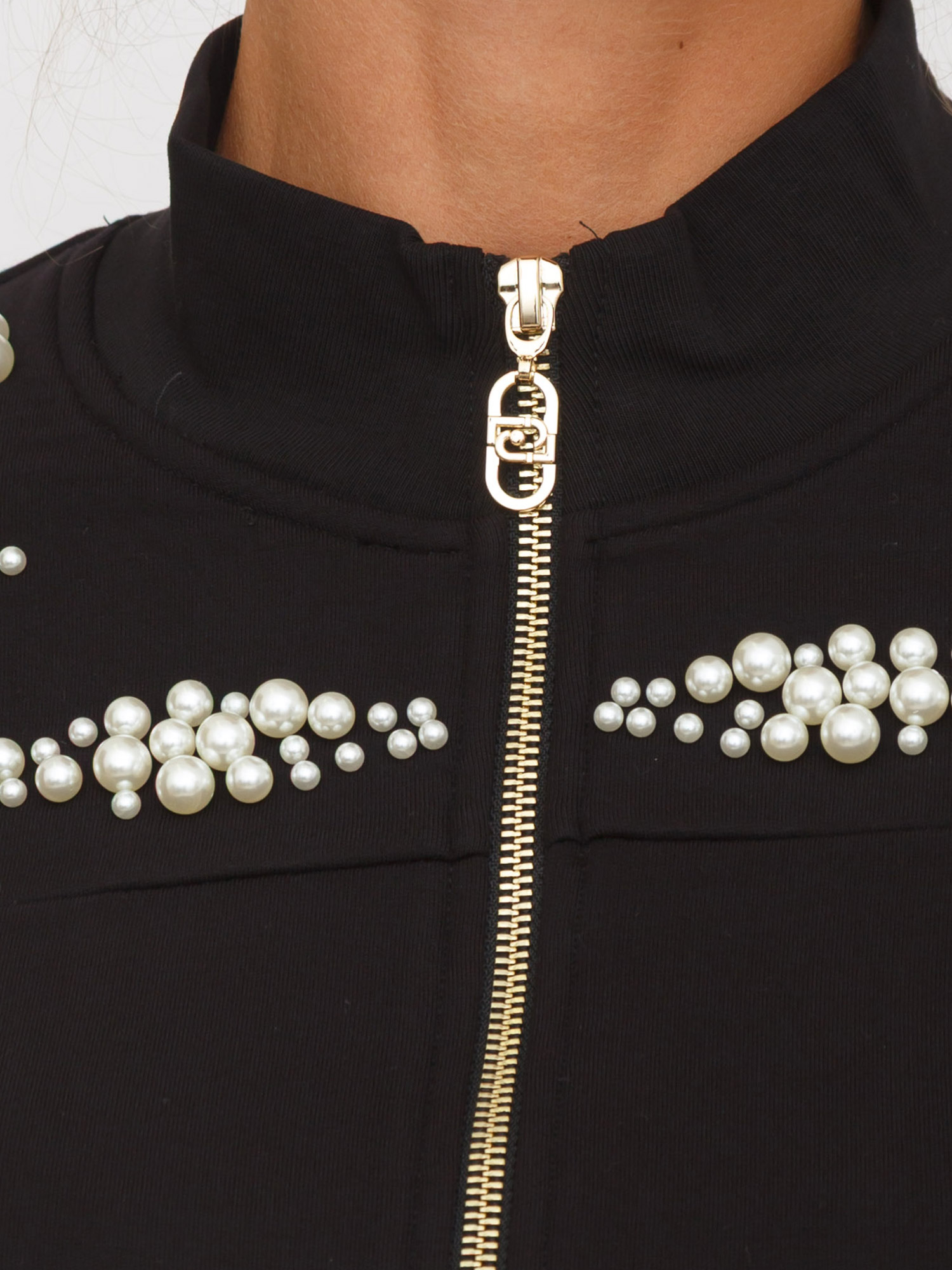 Brand: LIU JOFelpa Liu Jo donna realizzata in misto viscosa stretch con collo alto e perle applicate sulle spalle. Dotata di tasche sui lati e tirazip logata. La modella è alta 1.72 e indossa la taglia XS.
