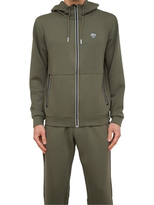 Felpa con cappuccio realizzata in misto viscosa stretch, dalla vestibilità confortevole. Il modello presenta apertura con zip, due tasche laterali zippate e una personalizzazione con patch scudetto applicato sul petto. Un capo versatile ed essenziale, complemento ideale di numerosi look in chiave sportiva.