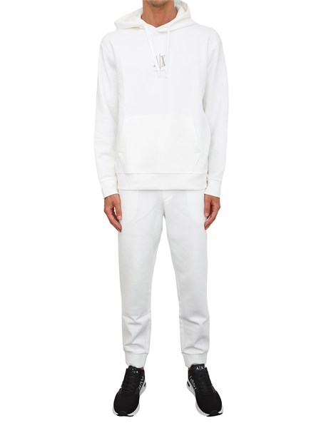 Felpa bianca Armani Exchange in jersey di cotone con cappuccio