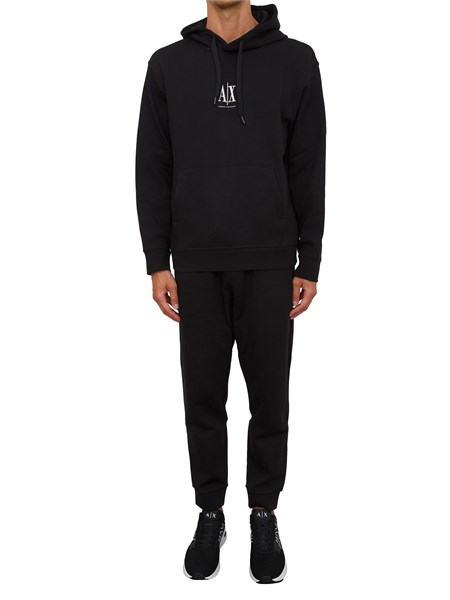 Felpa nero Armani Exchange in jersey di cotone con cappuccio