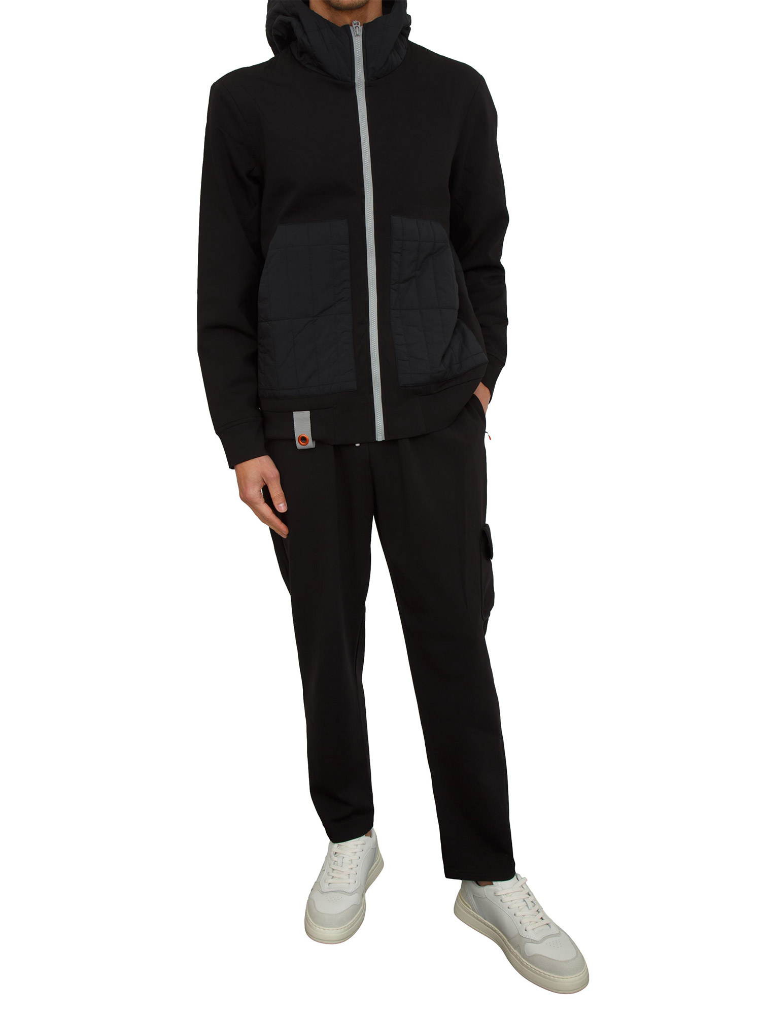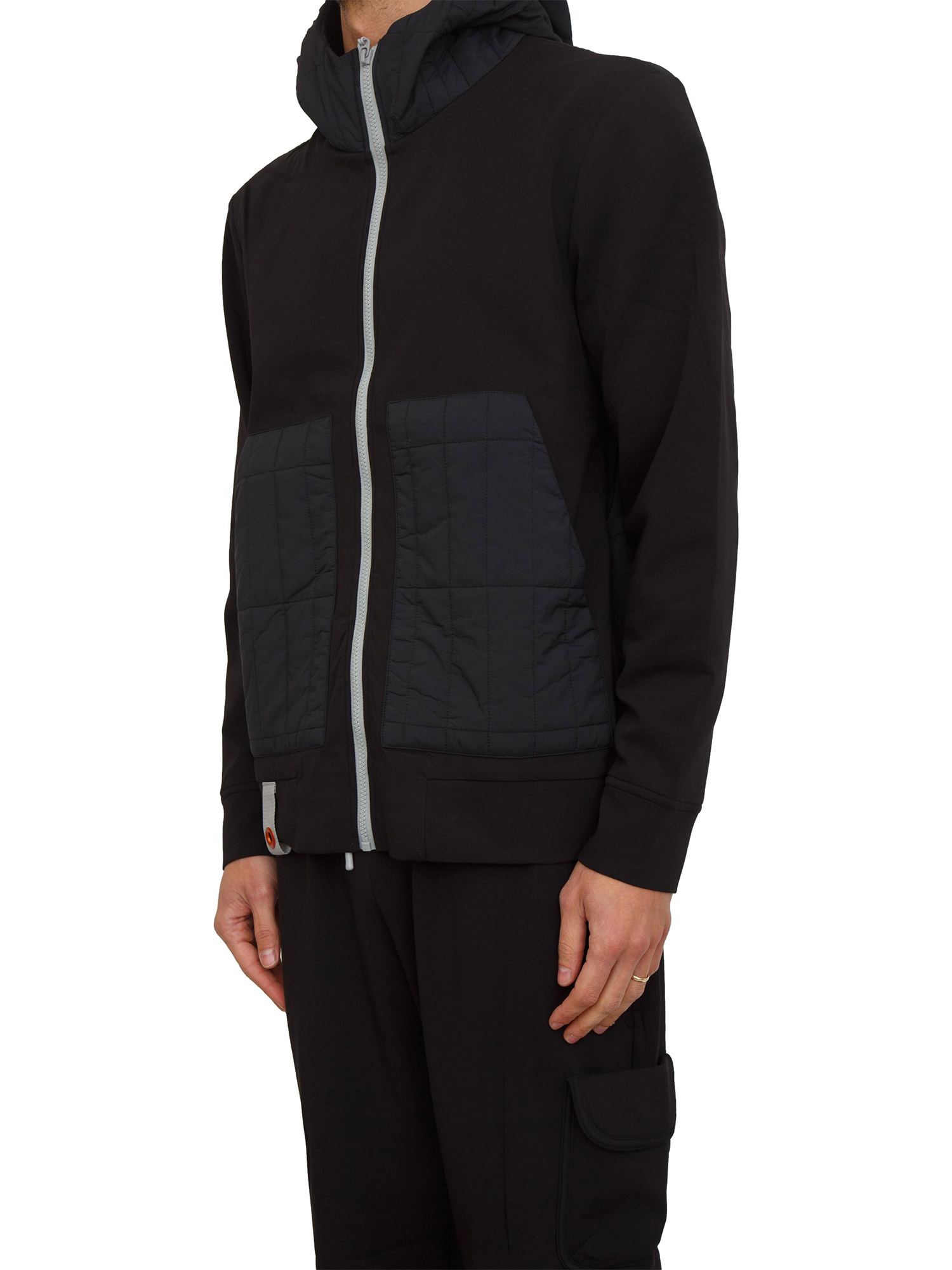 Brand: DEKKERFelpa uomo Dekker modello KEREL BMAT realizzata in doppio tessuto per unire comfort urbano, leggerezza e funzionalità tecnica. Corpo in scuba misto cotone e poliestere elasticizzato ed inserti come tasche frontali, cappuccio e retro del capo in nylon superleggero 20 denari, trapuntato a lingotti e finish semi-opaco. Il modello è alto 1.90m e indossa la taglia L.